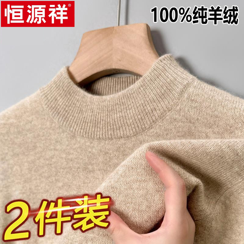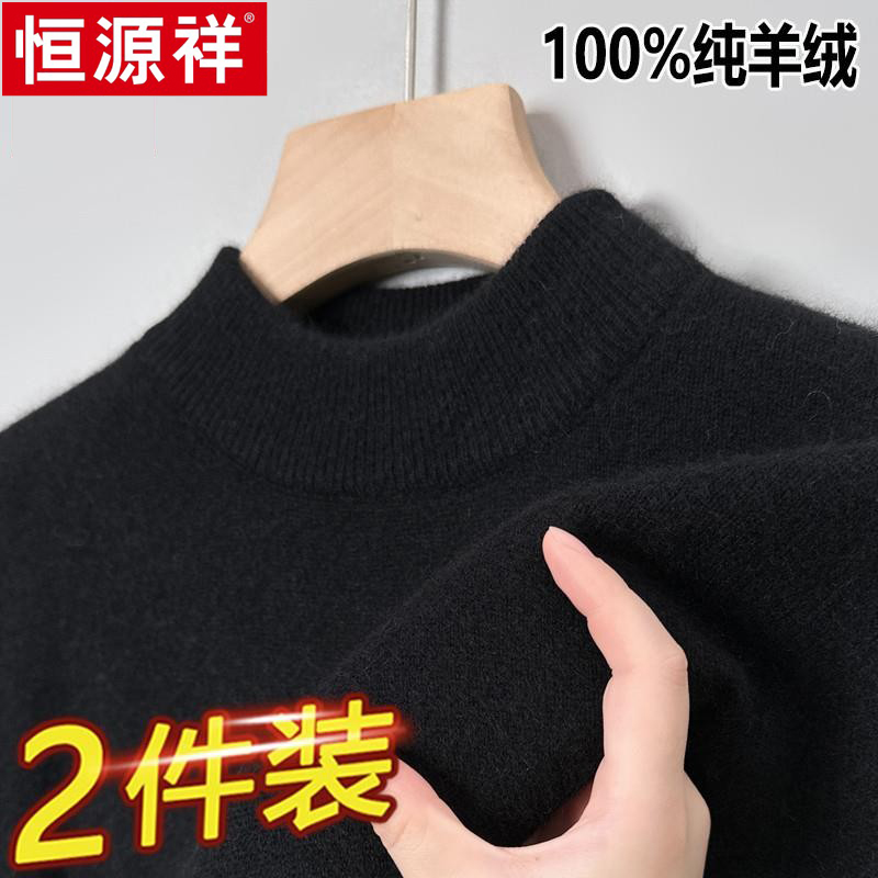 淘宝恒源祥100%纯羊绒衫男士冬季加厚款高领打底衫针织保暖休闲羊毛衫