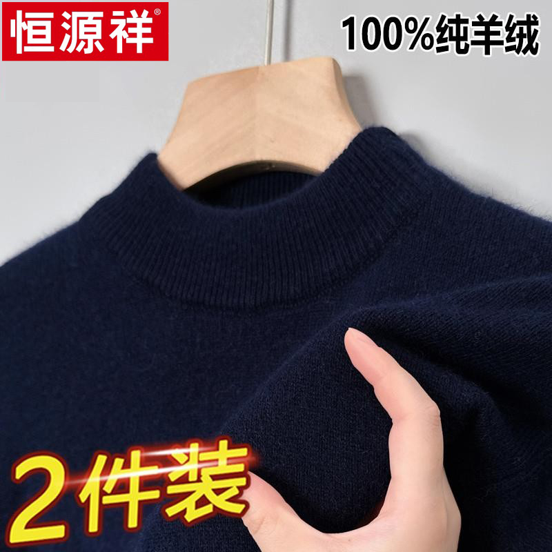 恒源祥男100纯羊毛衫厚款半高领2025秋冬新款针织衫百搭打底毛衣