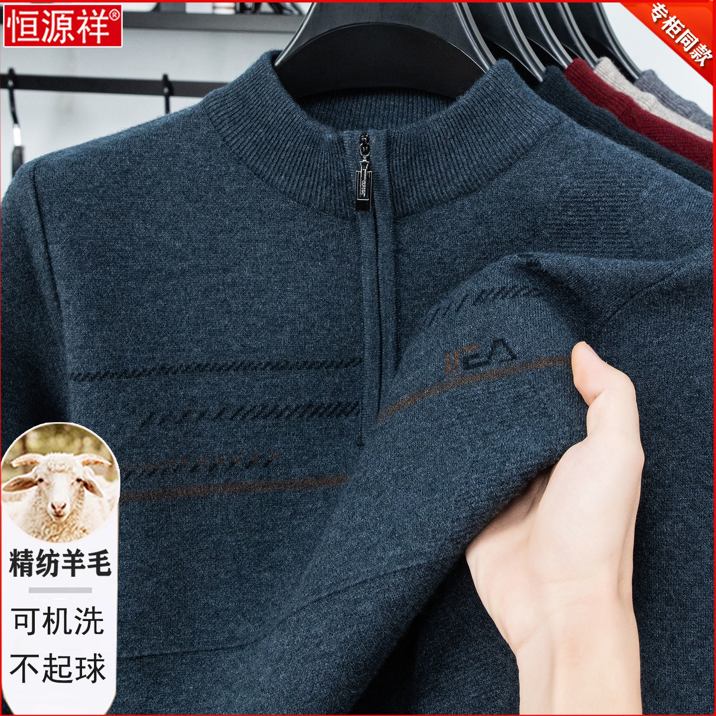淘宝恒源祥羊绒衫男中老年加厚保暖半拉链冬季红色本命年爸爸装羊毛衫
