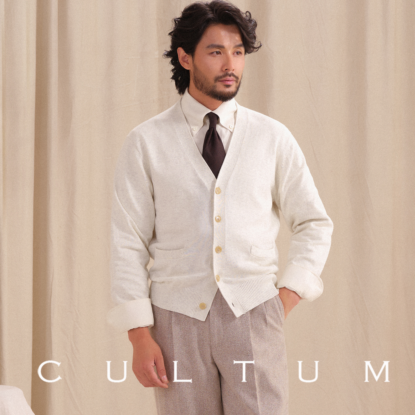 淘宝【保暖山羊绒】CULTUM秋冬休闲V领针织衫开衫男毛衣百搭叠穿外套