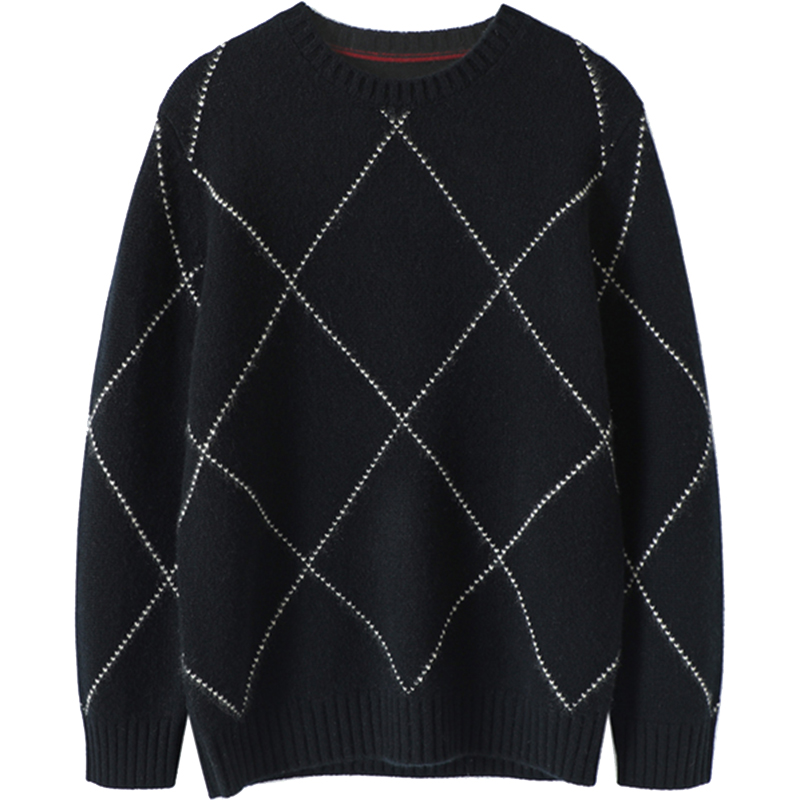 天皮皮狗秋冬新款 圆领复古绞花宽松加厚羊绒衫男士针织套头衫
