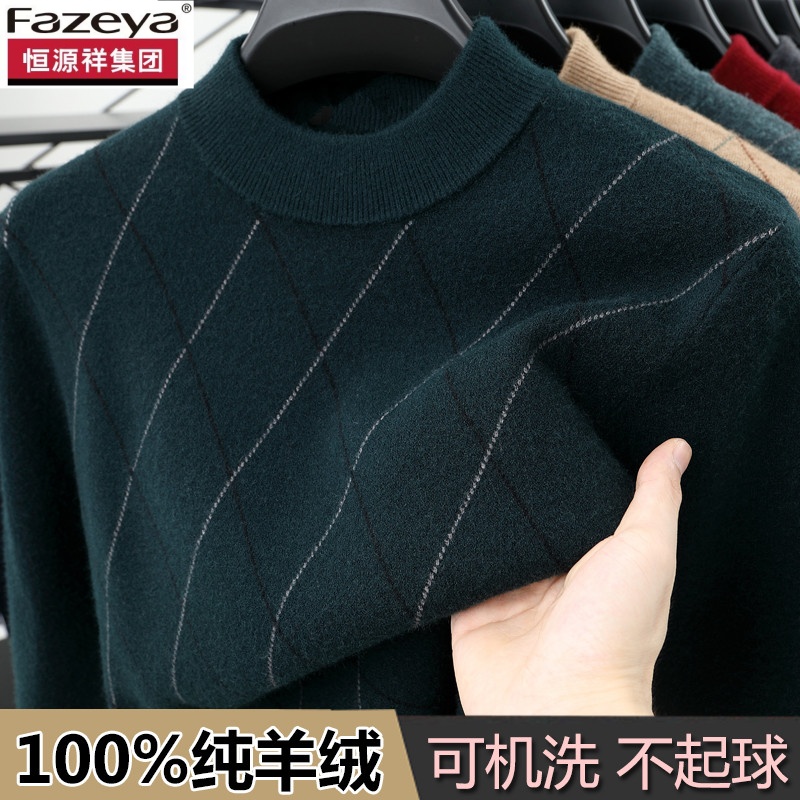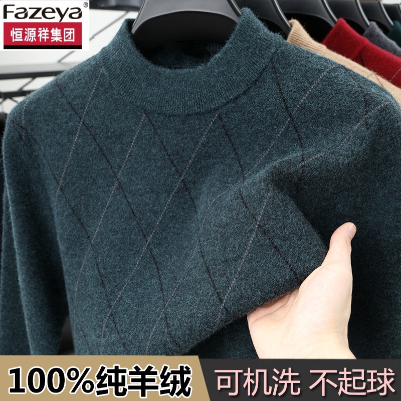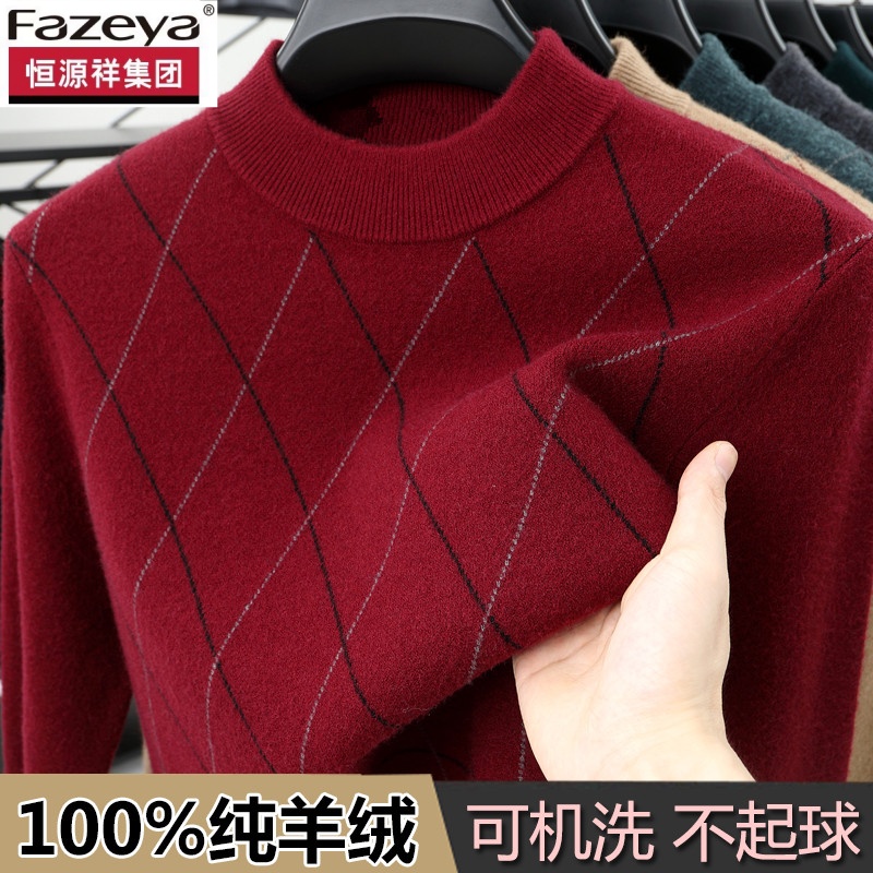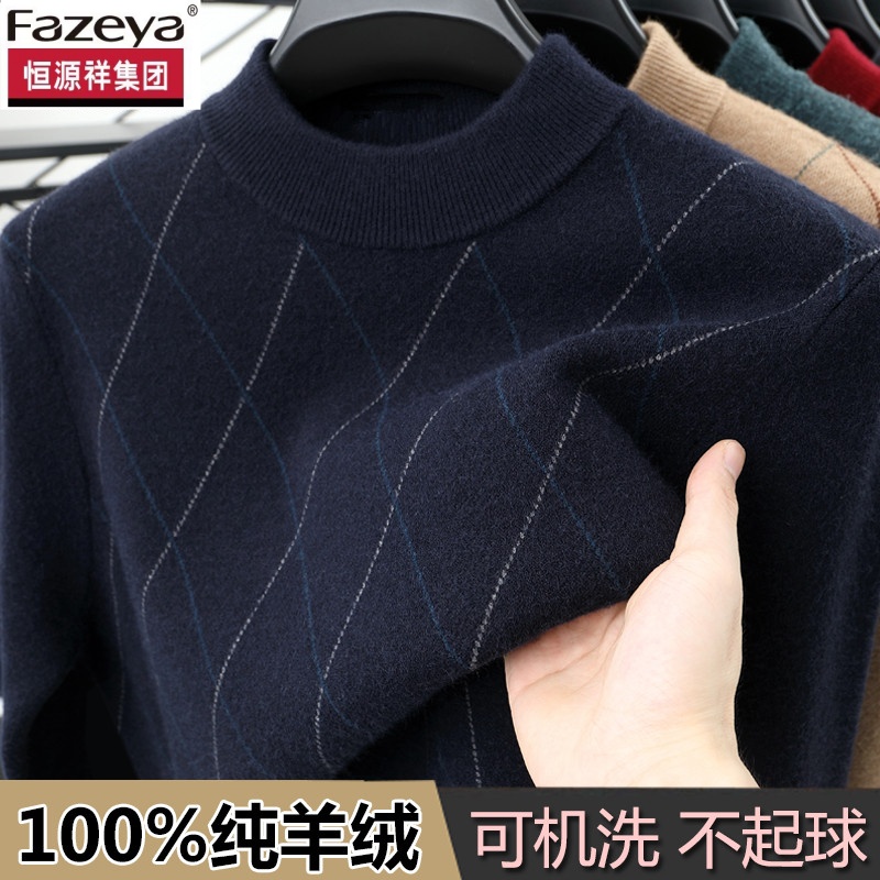 淘宝恒源祥集团彩羊正品羊绒衫男士冬季半高领新款毛衣中年加厚羊毛衫
