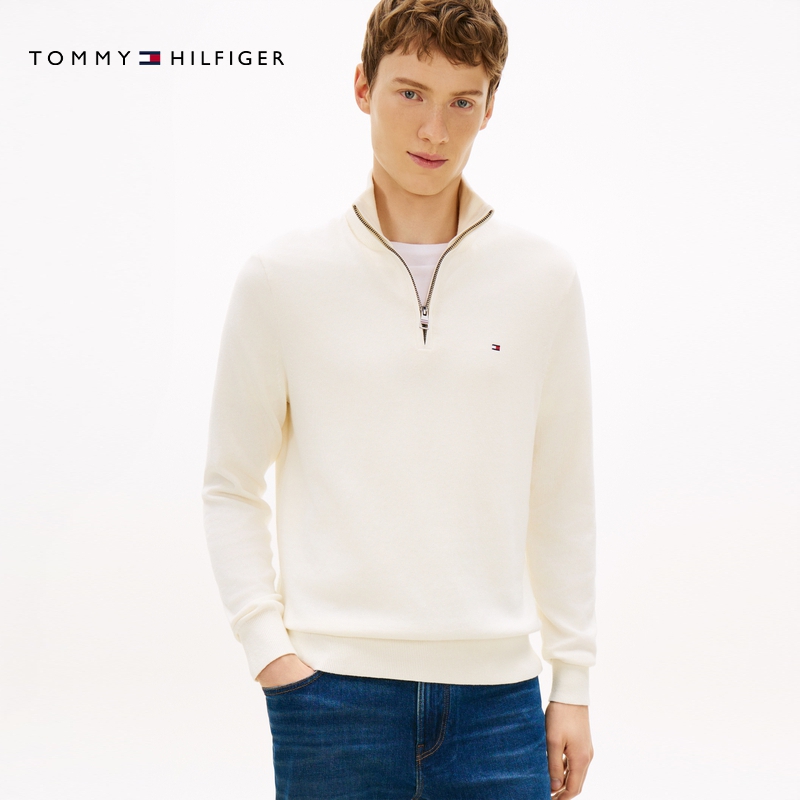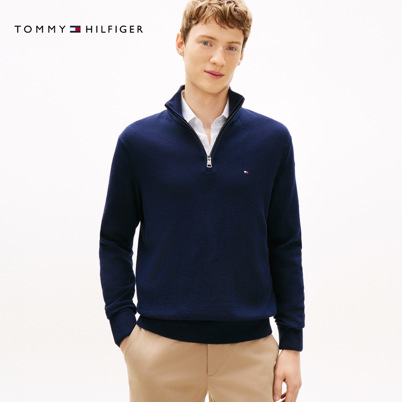 天猫【棉羊绒混纺】Tommy25秋冬男商务休闲纯色半拉链立领针织衫毛衣