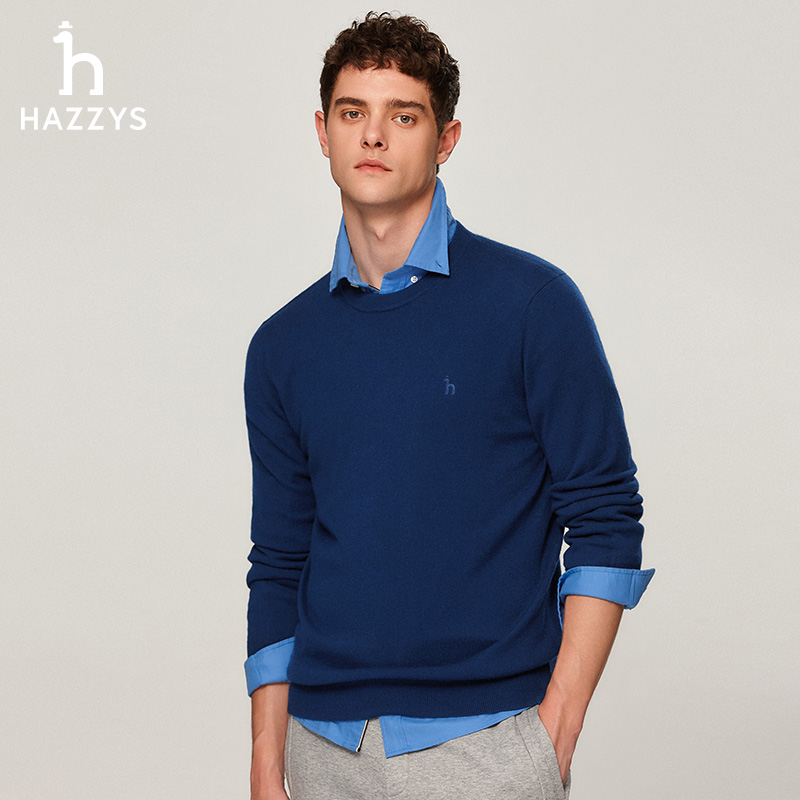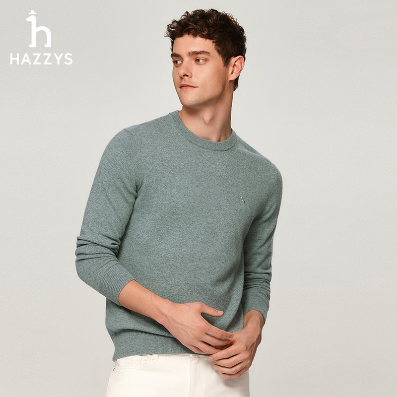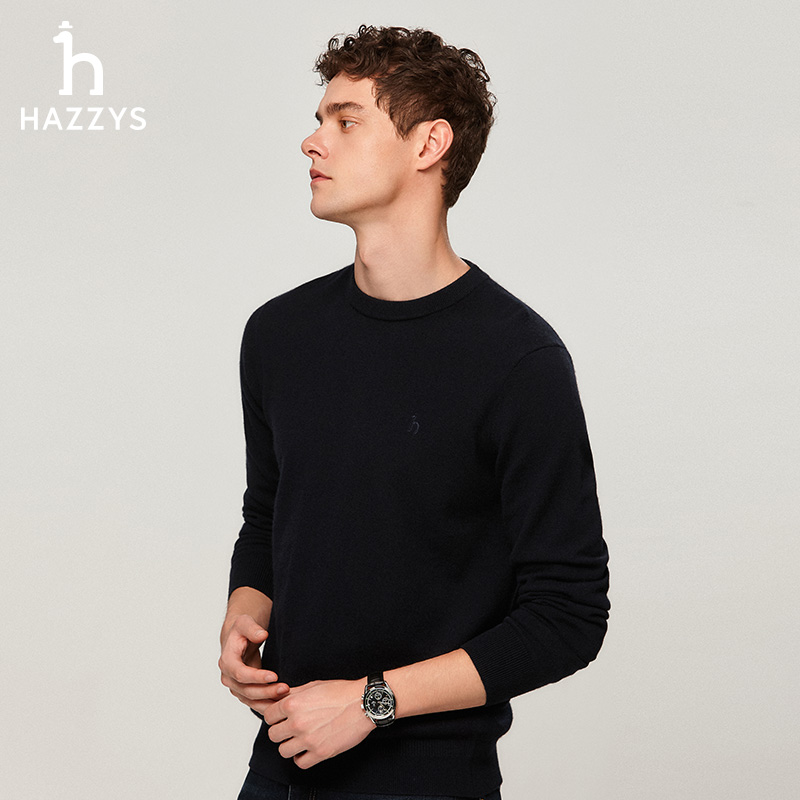 天猫Hazzys哈吉斯秋冬男士羊绒纯色圆领毛衣休闲舒适上衣保暖针织衫男