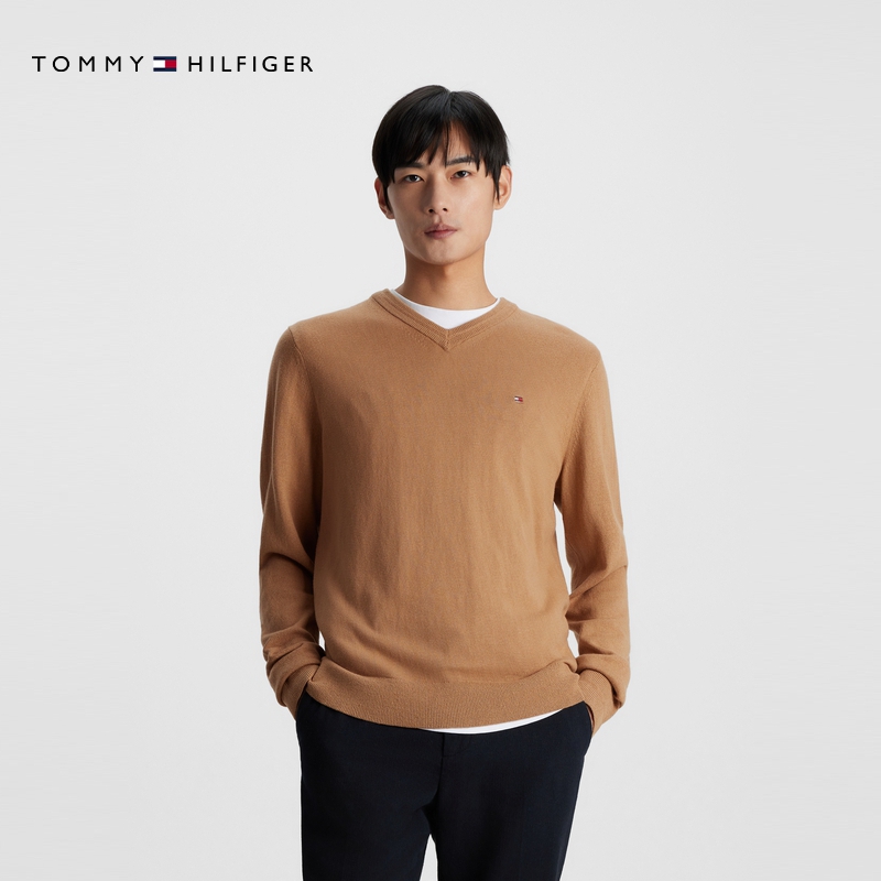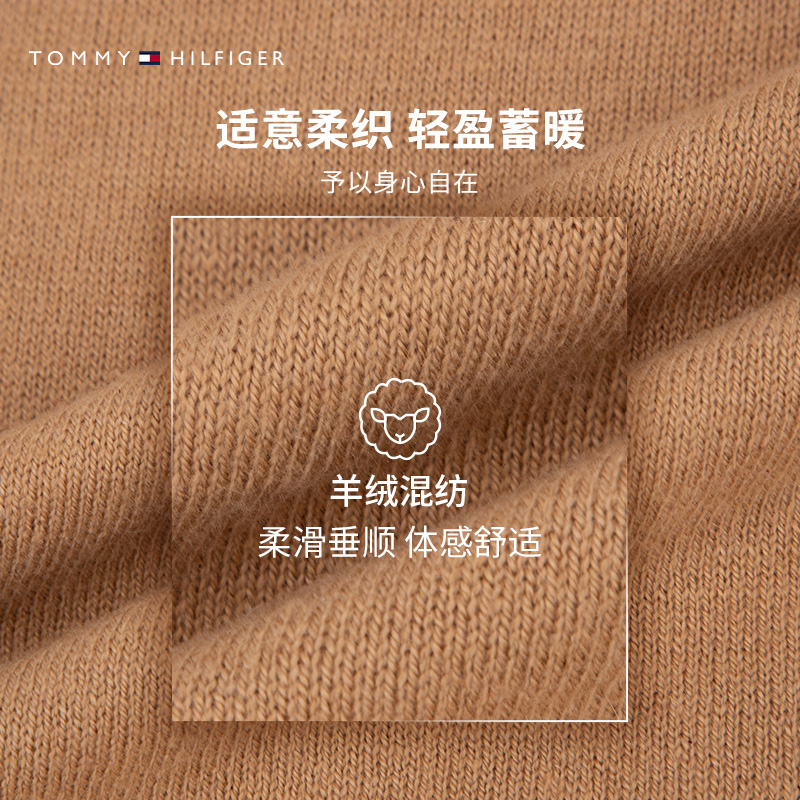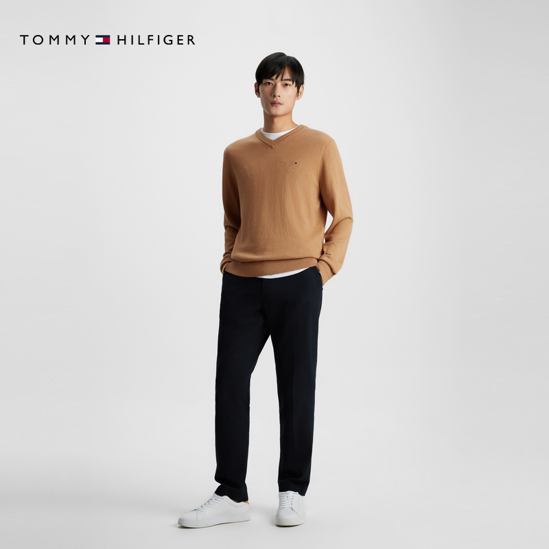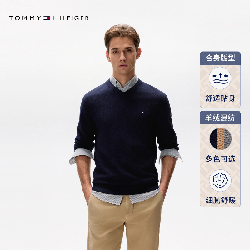 天猫【含羊绒】Tommy秋冬男女情侣休闲纯色V领打底针织衫毛衣