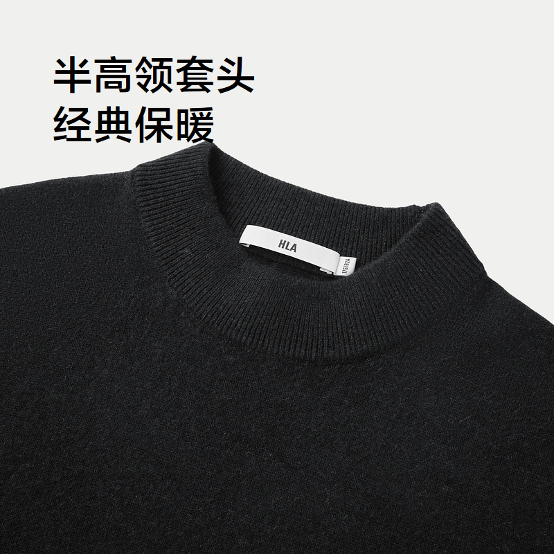 天猫HLA/海澜之家半高领羊绒衫秋冬纯色修身柔软舒适纯羊绒保暖毛衣男