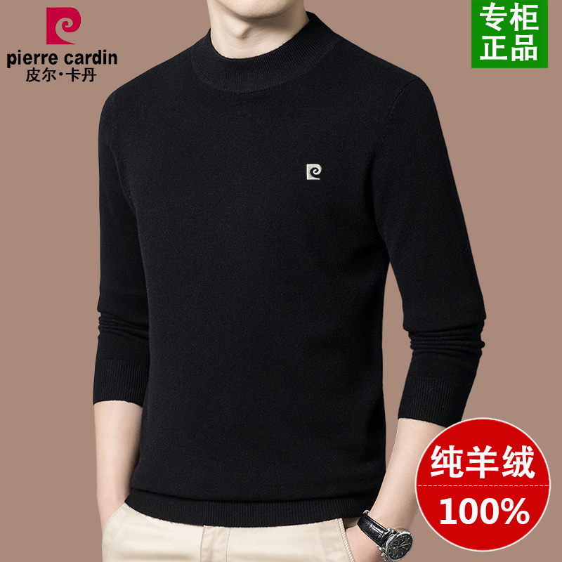 淘宝皮尔卡丹100%纯羊绒衫男冬季厚款半高领毛衣中年打底爸爸装羊毛衫