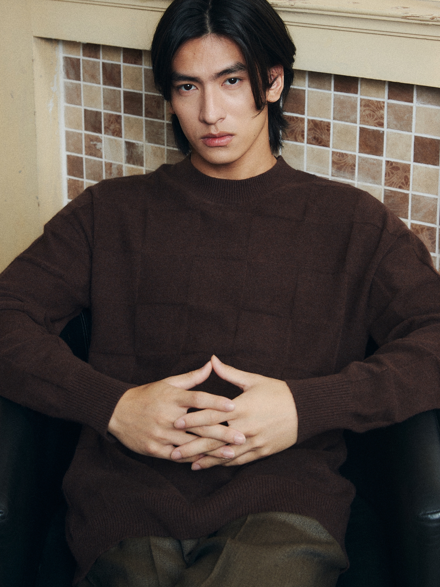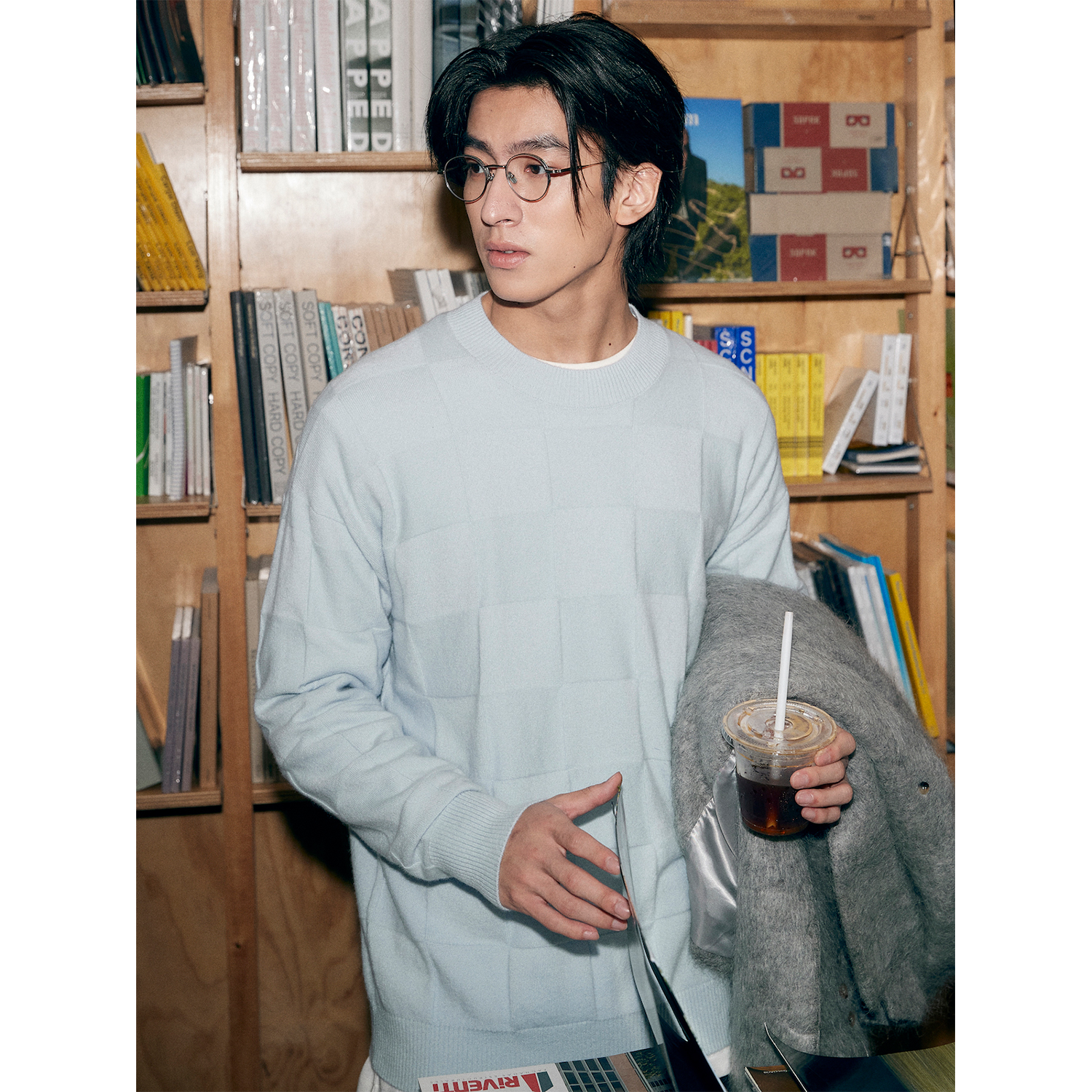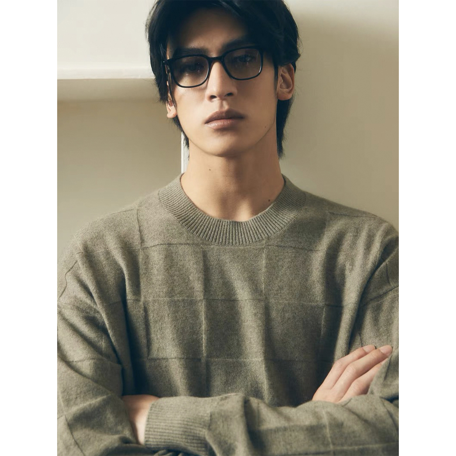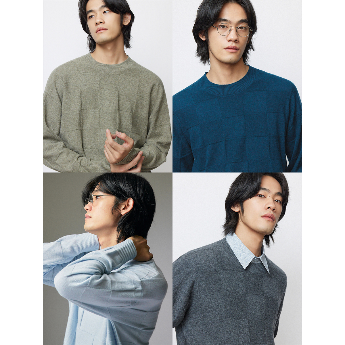 淘宝UNICA HOMME/松弛版型_罕山白绒棋盘格毛衣羊绒打底针织衫男