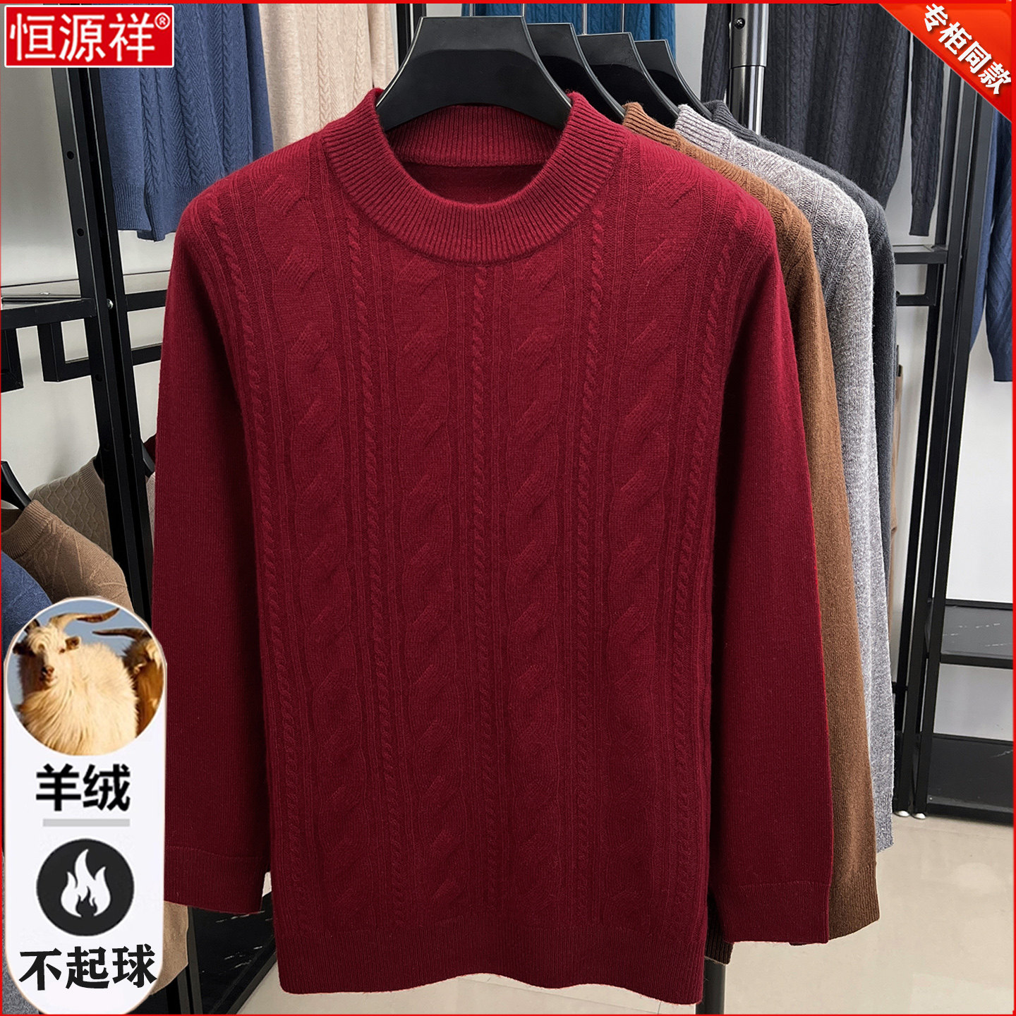 淘宝恒源祥羊绒衫男士冬季中年半高领毛衣爸爸装加厚本命年红色羊毛衫