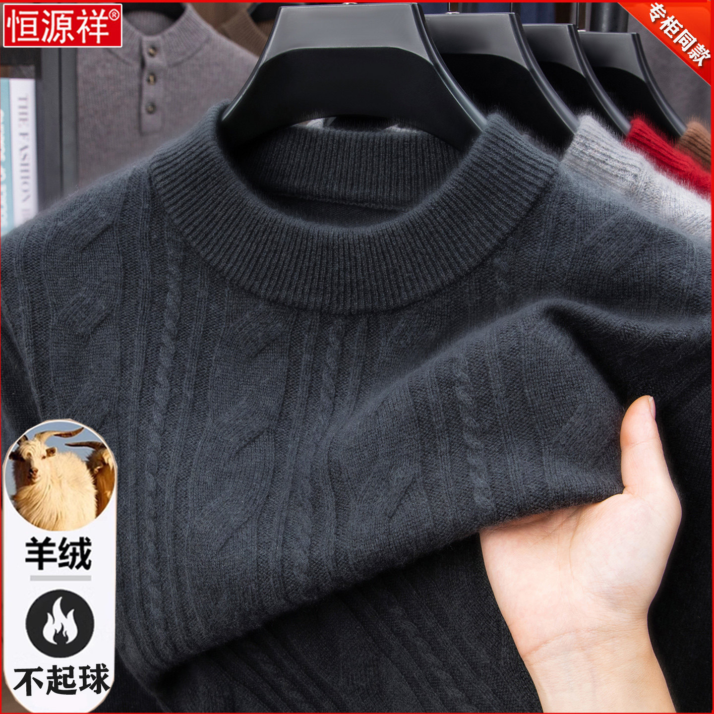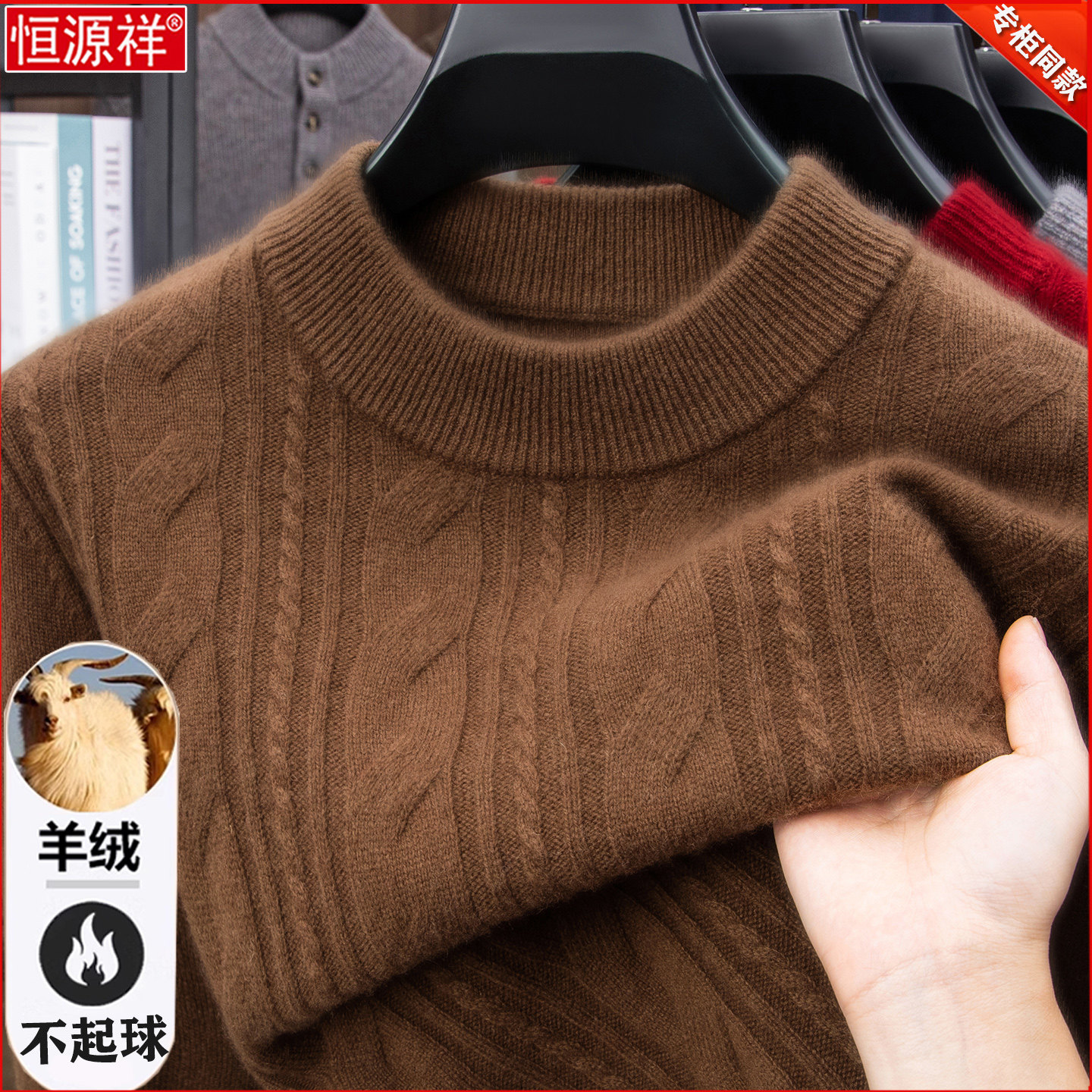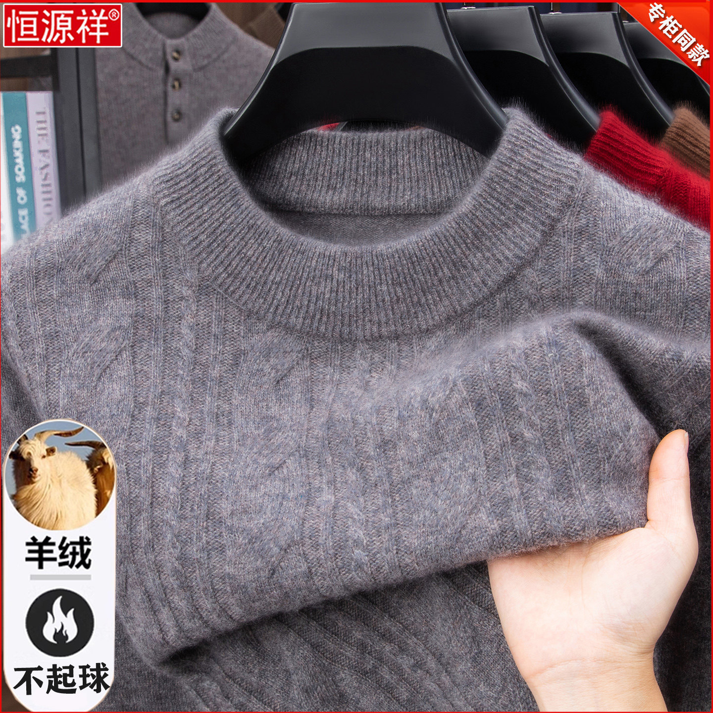 淘【600克】恒源祥羊绒衫男士加厚毛衣高翻领抗起球中年打底羊毛衫