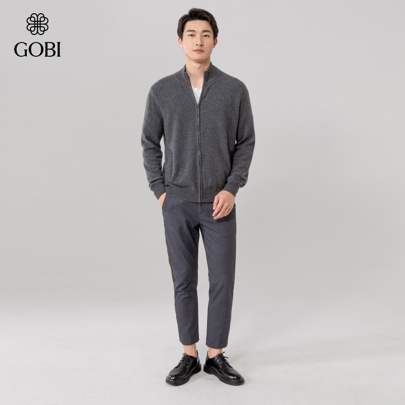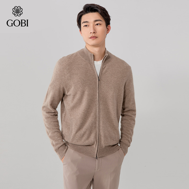 天猫GOBI戈壁秋冬拉链立领夹克山羊绒男士针织开衫毛衣上衣外套MK03