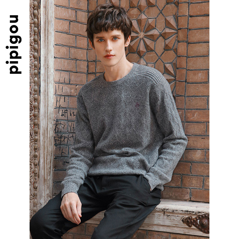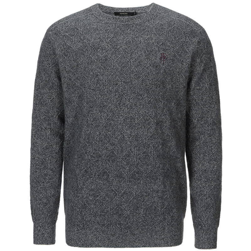 天猫皮皮狗秋冬新款圆领双股双色加厚绞花男士套头针织羊绒衫毛衣