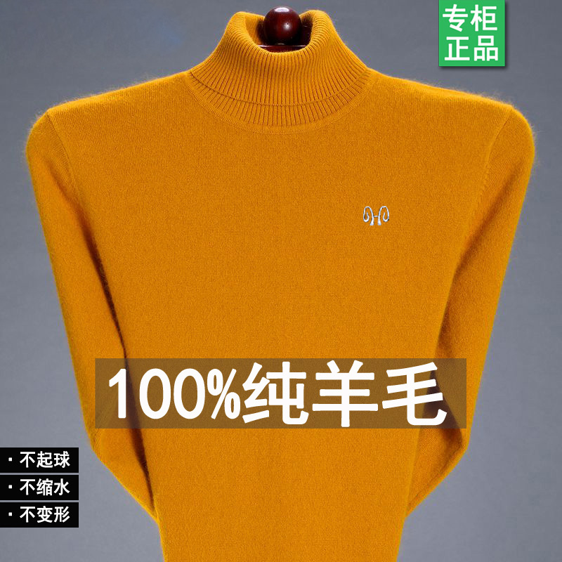 淘宝恒源祥可翻高领100%纯羊毛衫冬季男士加厚保暖羊绒衫中年打底毛衣
