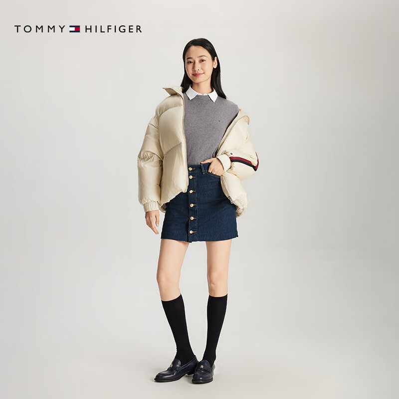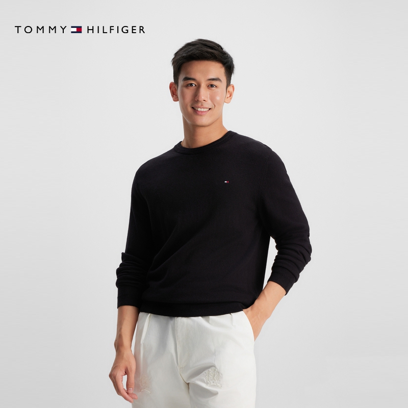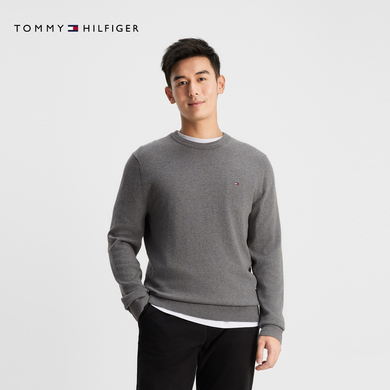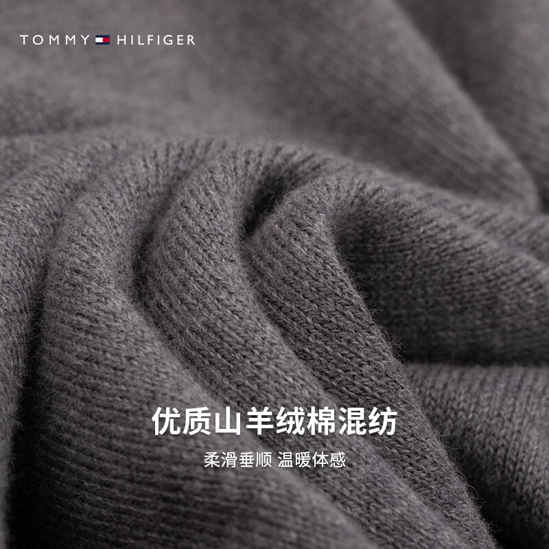 天猫【含羊绒】Tommy秋冬男女休闲纯色打底合身内搭针织衫毛衣
