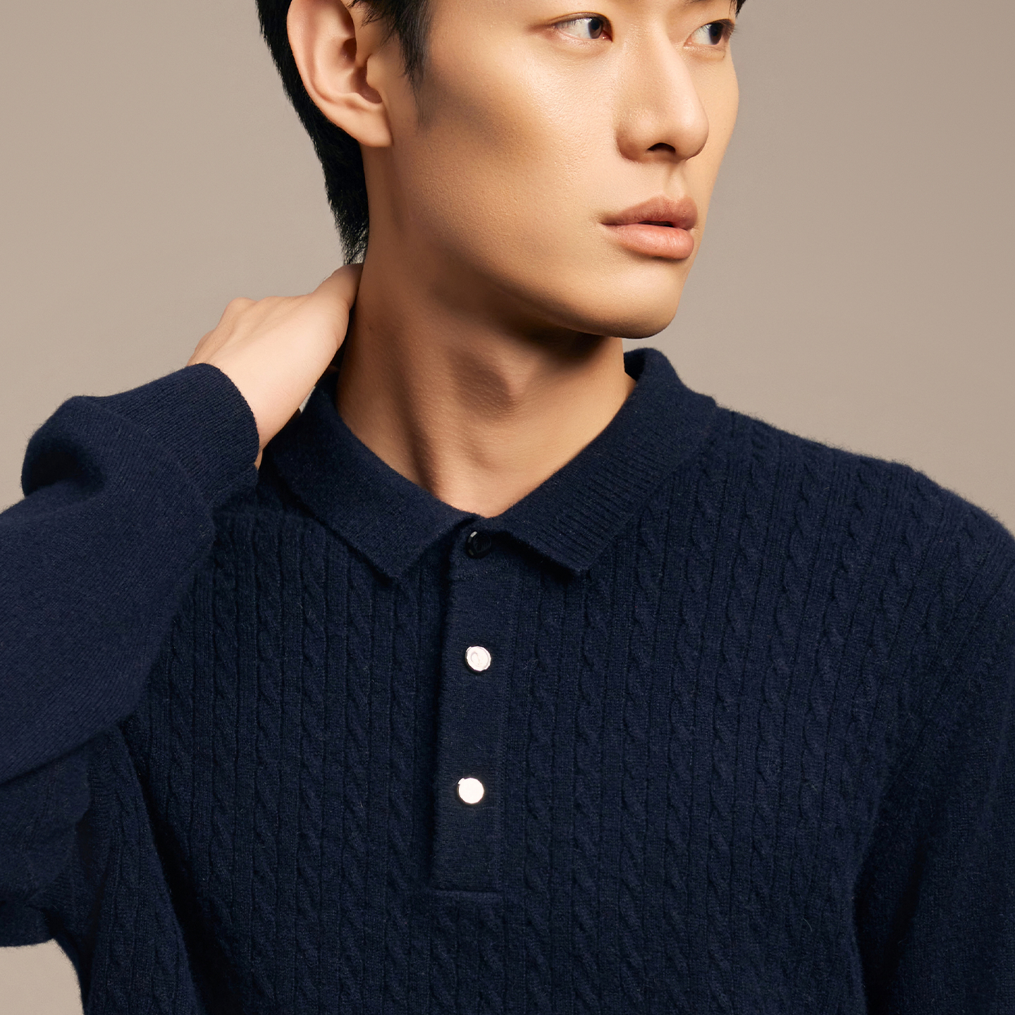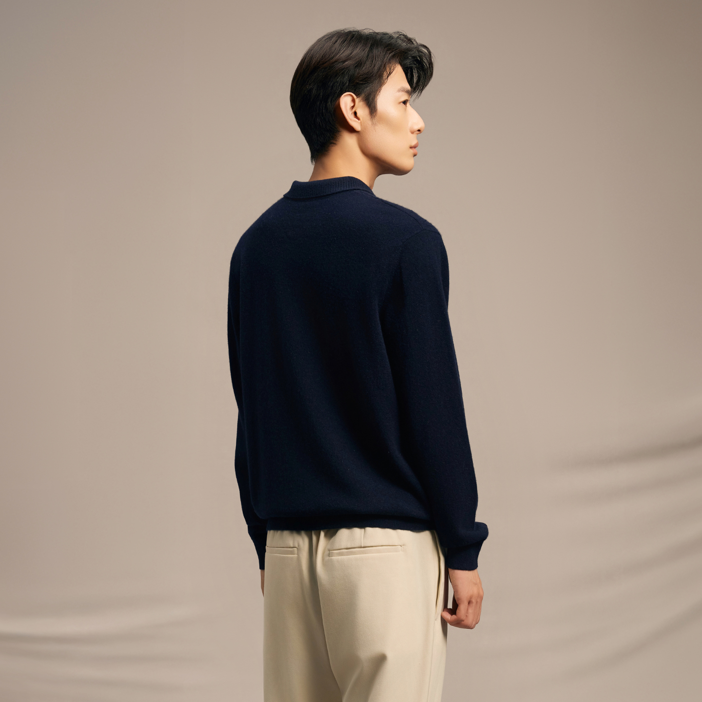 天猫鹿王100%山羊绒衫男翻领针织衫毛衣内搭纯色保暖打底25年秋冬新款