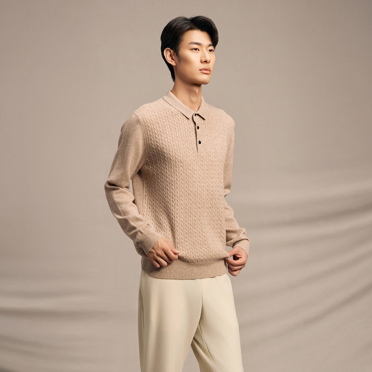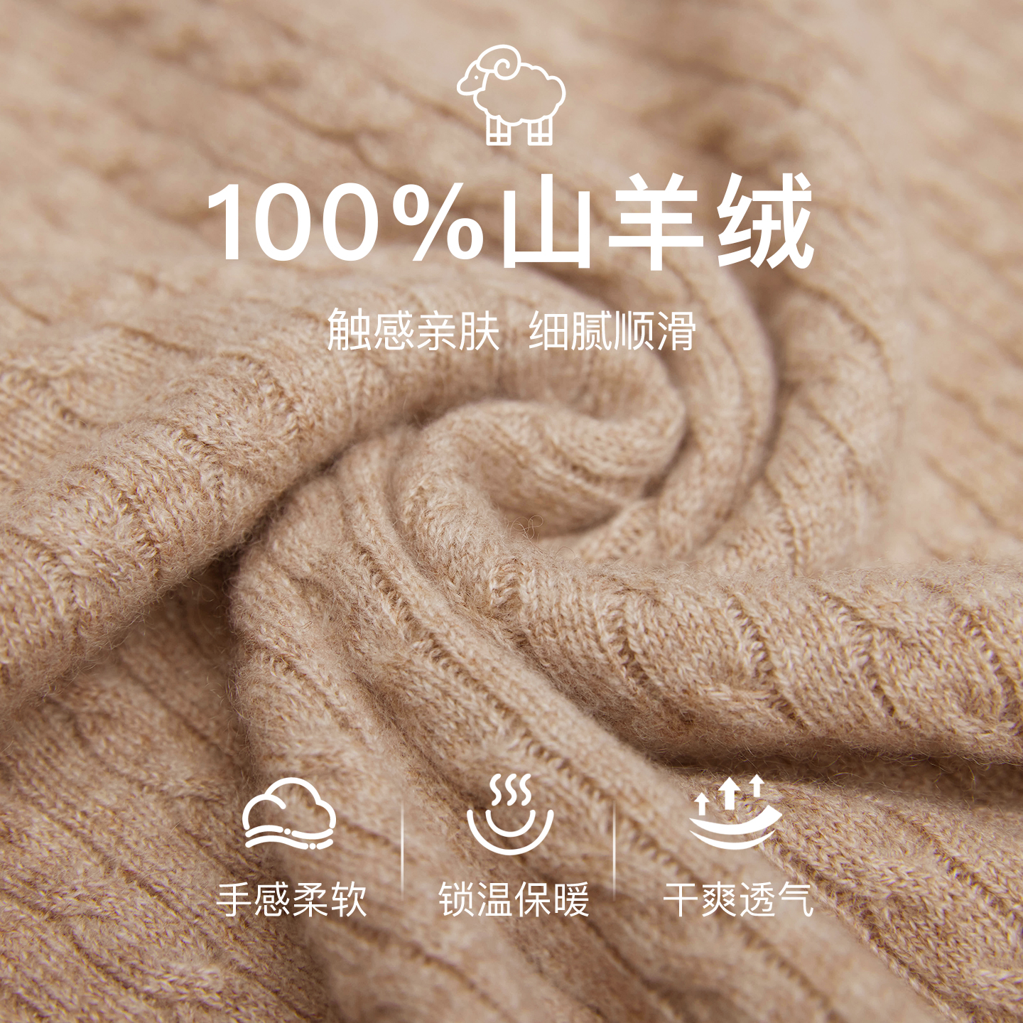 圣雪绒冬季新品100%山羊绒男圆领复古绞花休闲针织衫