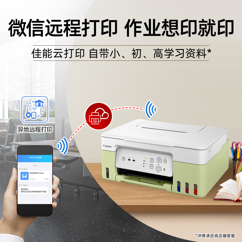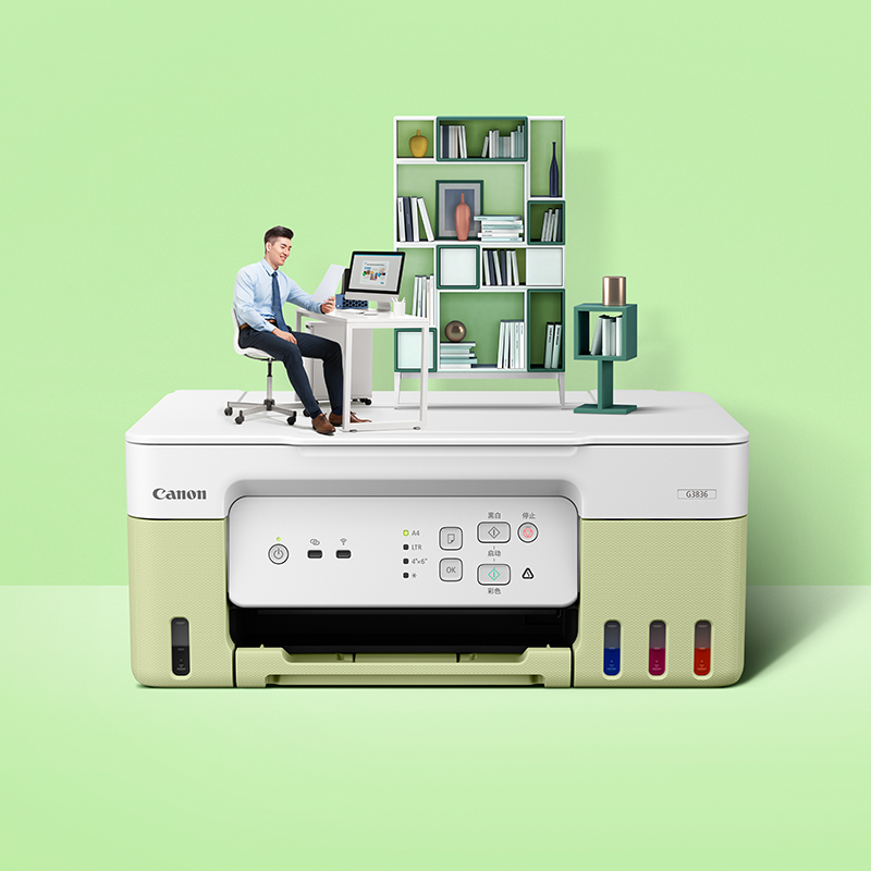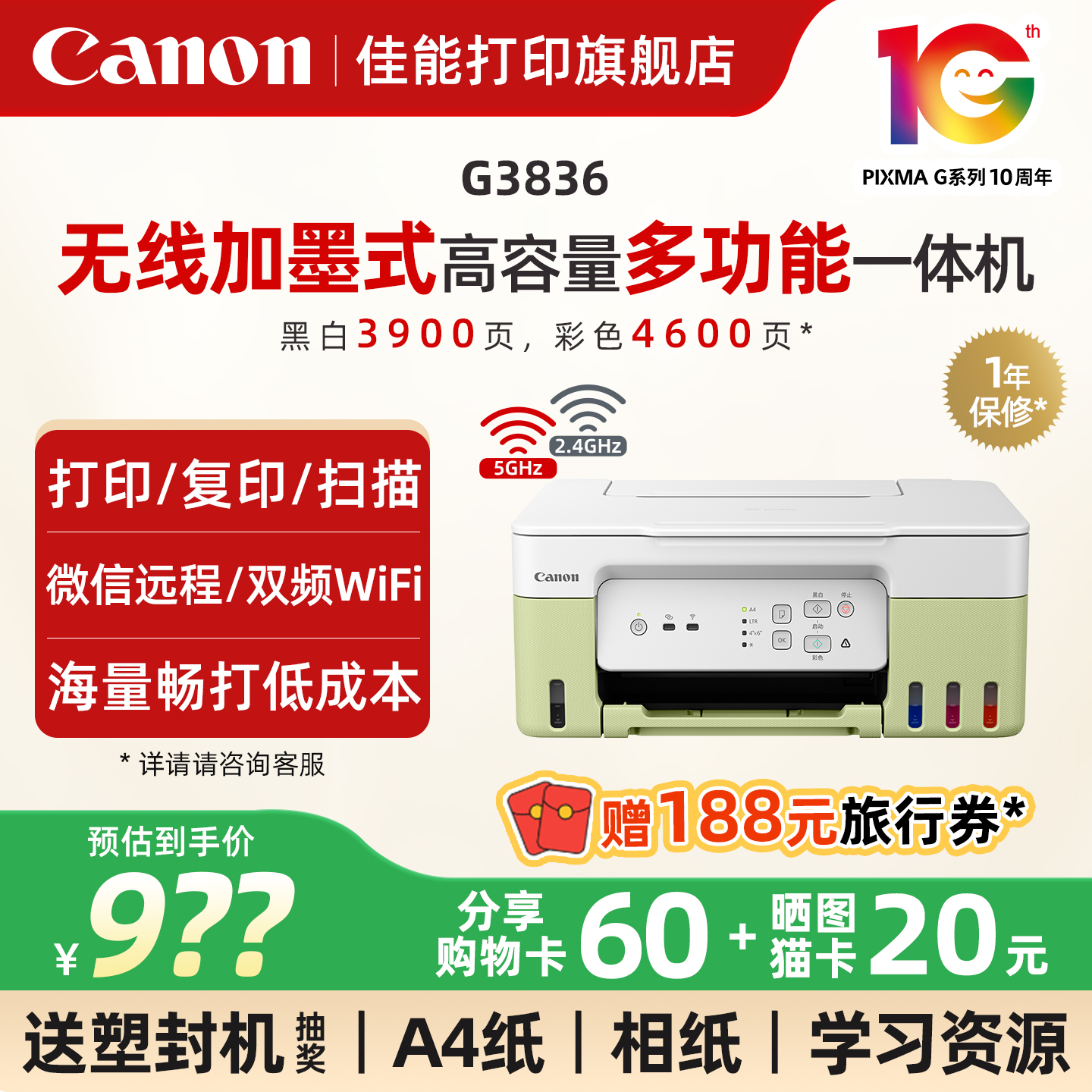 天猫佳能旗舰店G3833/3831/3836原装加墨彩色A4喷墨打印机一体机办公家用照片5G WIFI手机远程复印扫描