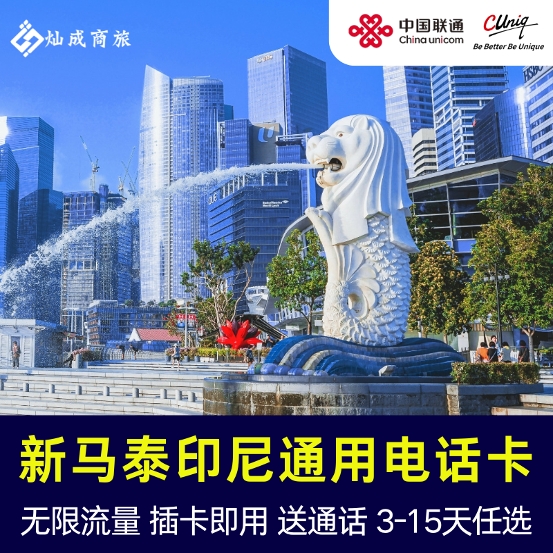 天猫新加坡5G电话卡新马泰印东南亚四国通用无限手机流量上网卡3-15天
