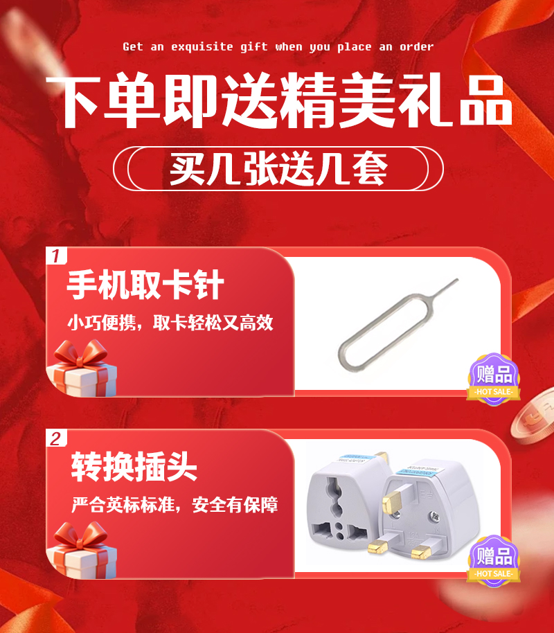 天猫英国电话卡CMLink5G无限流量可选高速上网流量卡含通话旅游手机卡