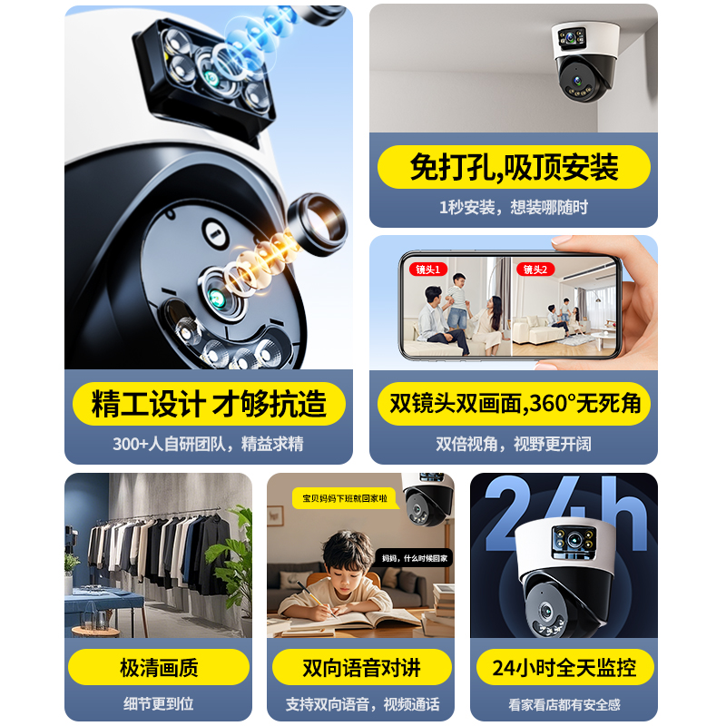 天猫吸顶摄像头监控器店铺商用家用室内户室外WIFI门口监控5G手机远程360度无死角无线智能高清夜视摄影机录像机
