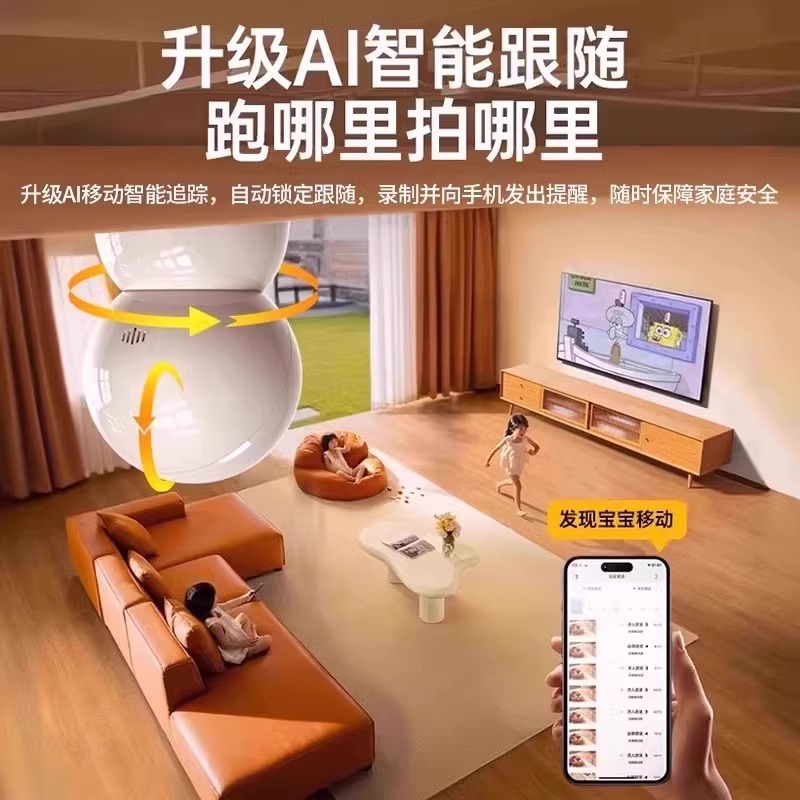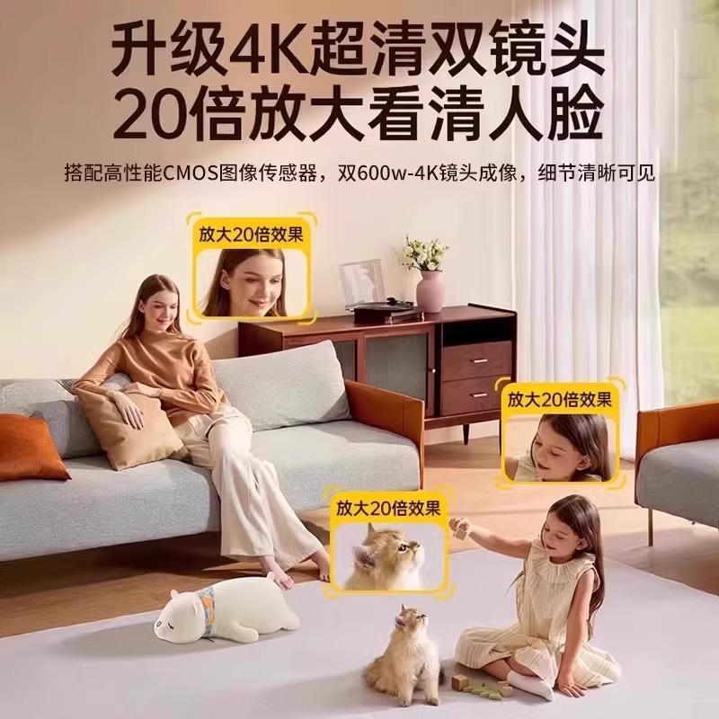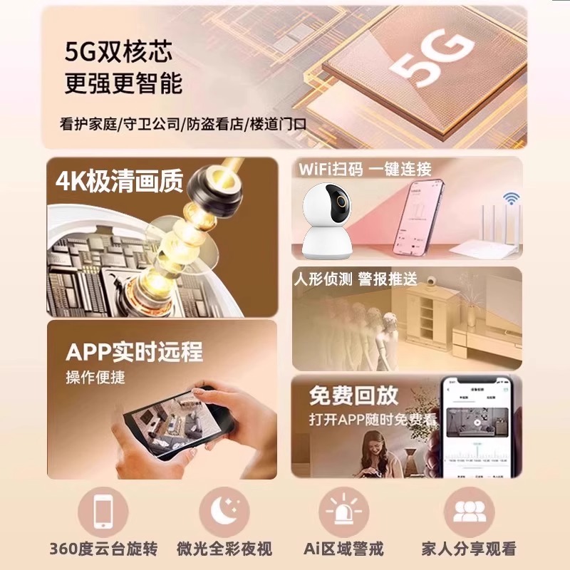 天猫监控智能摄像头家用4K全景高清室内夜视5G无线连接手机远程看护器