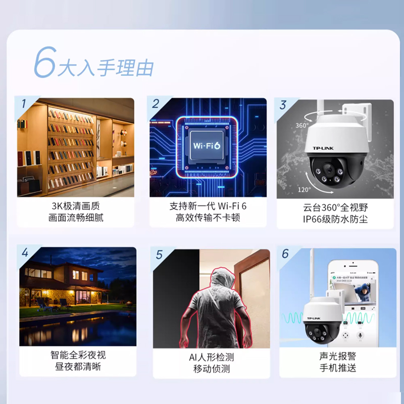 天猫普联TP-LINK监控无线摄像头500万AI智能追踪家用4G免费语音手机远程高清5G全彩WIFI室外球机巡航TL-IPC652