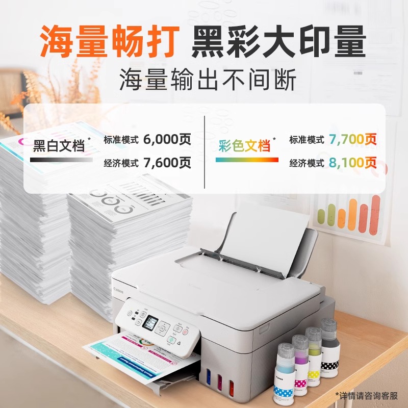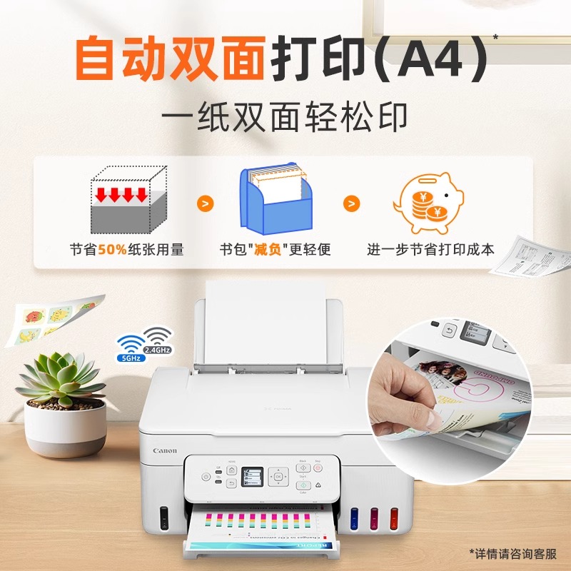 天猫佳能G3881彩色自动双面墨仓式原装连供打印机一体机办公专用复印扫描家用小型喷墨照片手机5G无线家庭wifi
