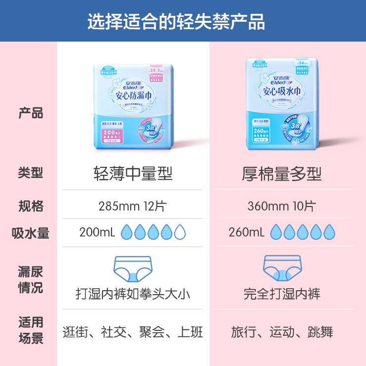 天猫安而康女性成人防漏尿吸水巾卫生巾孕妇产妇轻失禁护垫纸尿片箱装