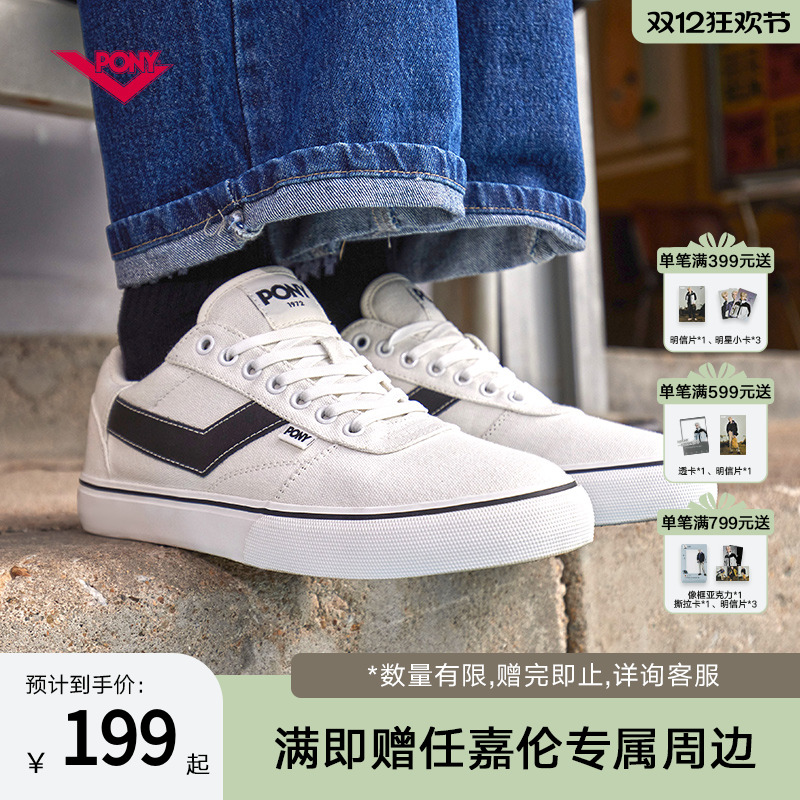 天猫PONY板鞋Skate男女鞋春季白色情侣低帮休闲帆布耐磨运动鞋滑板鞋