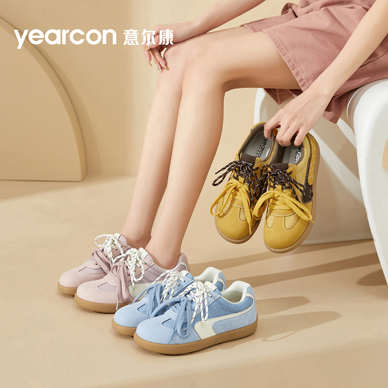 天猫意尔康女鞋2025新款夏季透气网面休闲板鞋女士百搭运动芭蕾德训鞋