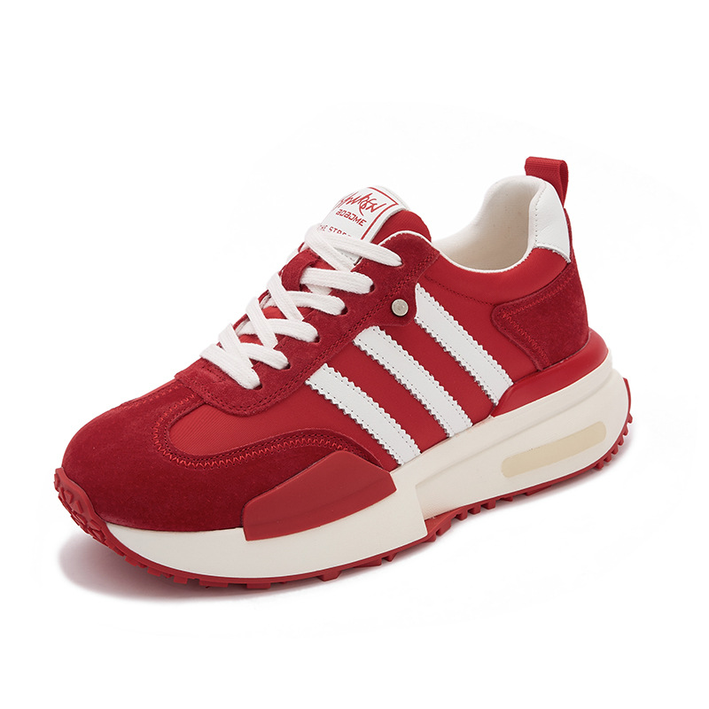 运动鞋厚底休闲皮面学生板鞋女2025春季新款红色德训鞋ins小白鞋