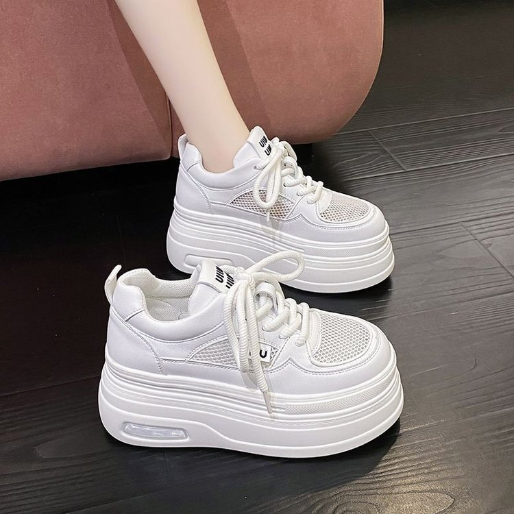淘宝超厚底增高小白鞋女2025新款夏季网面透气女鞋轻便百搭休闲松糕鞋