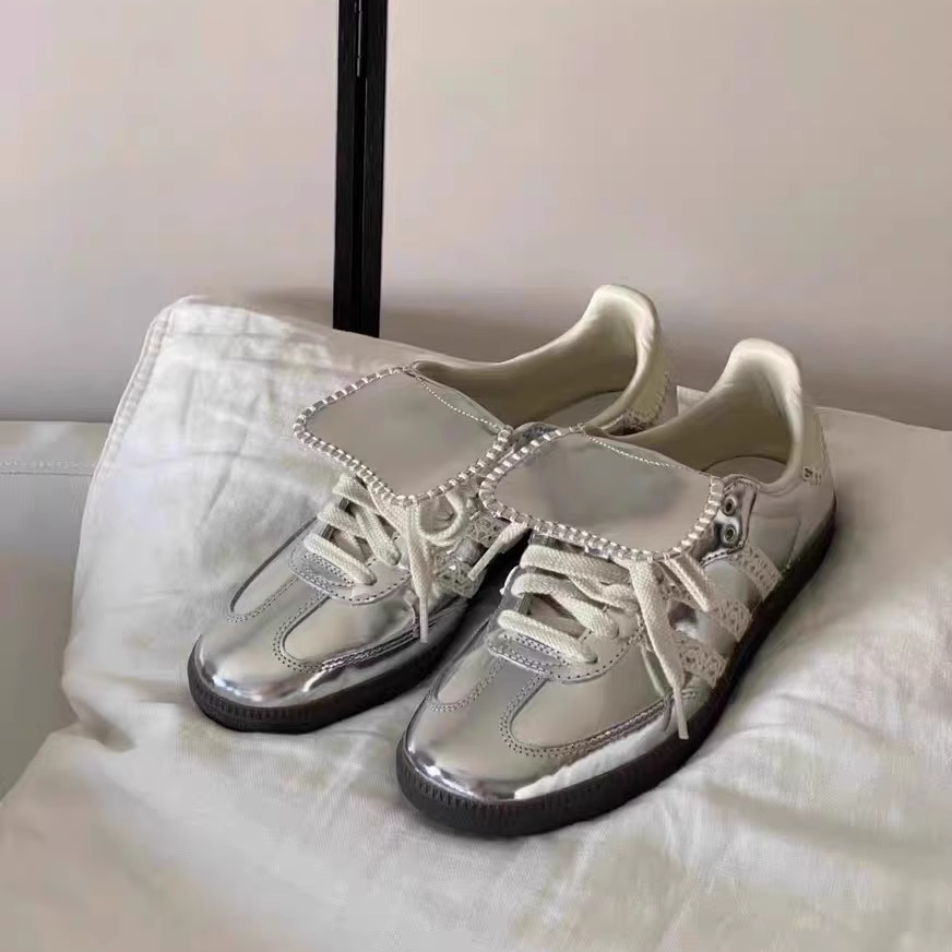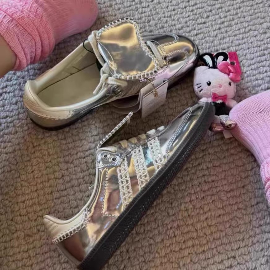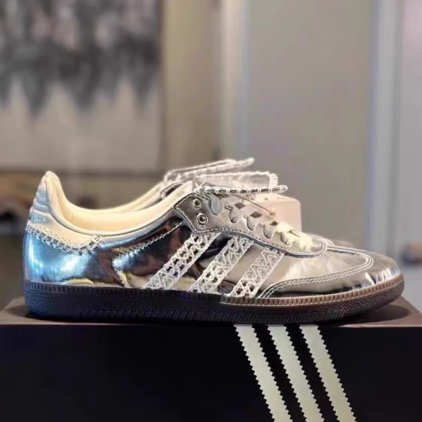 淘宝2025新款wales bonner桑巴德训鞋液态银休闲薄底鞋男女运动休闲鞋