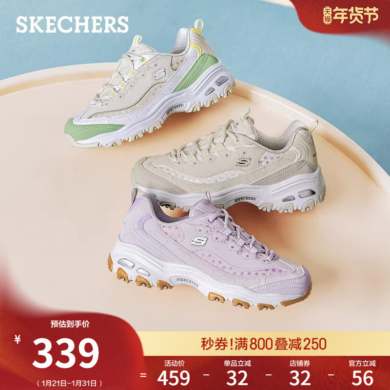 成毅同款|斯凯奇月影鞋|女鞋银色老爹鞋春季流行时尚厚底休闲鞋