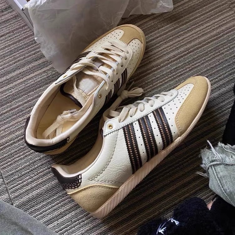 这是2025年新款桑巴德训鞋,由知名品牌walesbonner出品。这款男女同款的休闲运动鞋采用薄底设计,时尚与舒适并存。鞋款复古风格,融合了现代流行元素,展现出独特的魅力。无论是日常休闲穿搭还是运动锻炼,都能轻松应对。卓越的材质和工艺,保证了穿着的舒适度和耐用性。新款桑巴德训鞋是您追求时尚、舒适与品质的不二之选。