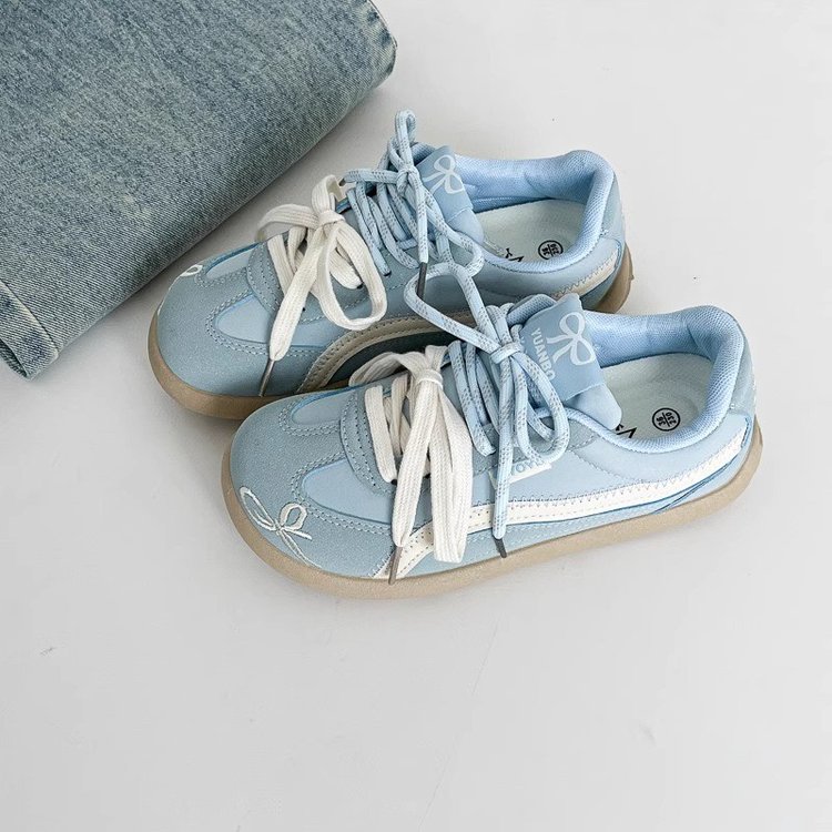 天星期六厚底德训鞋女2025秋季新款舒适系带圆头单鞋毛球复古休闲鞋