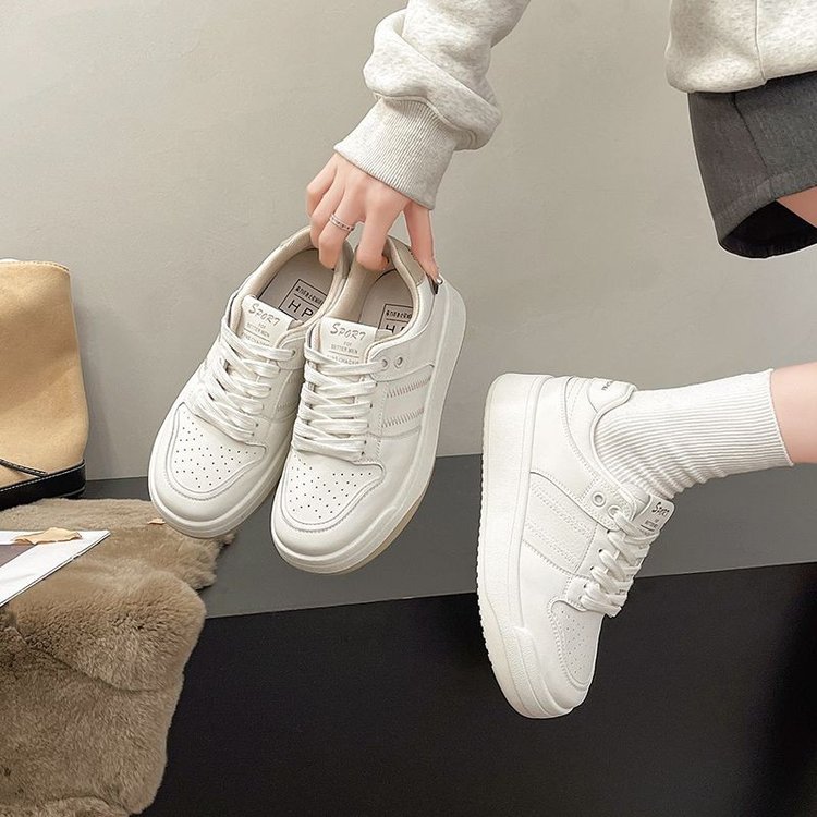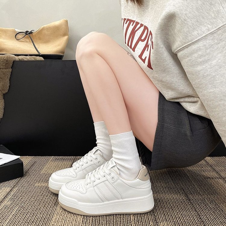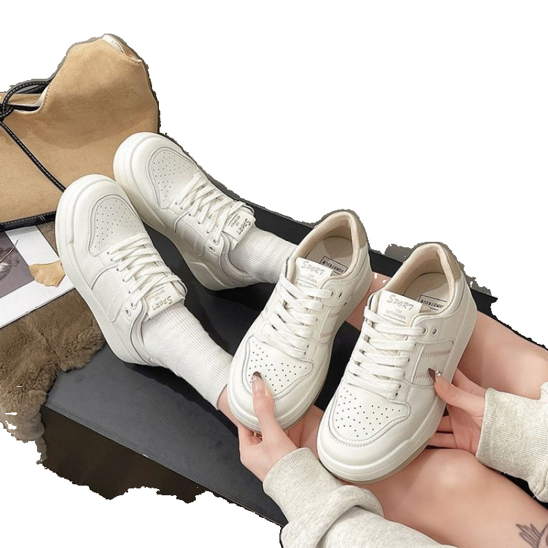 淘品牌特价真皮小白鞋女2025秋季新款休闲百搭厚底增高学生运动板鞋
