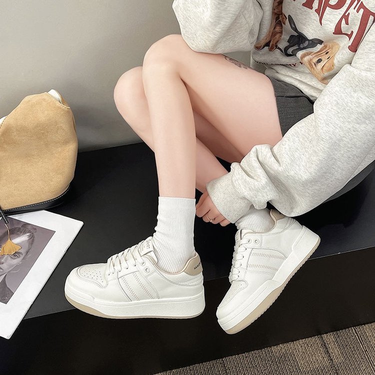 淘国潮白色红白拼接面包鞋女ins超酷高街休闲鞋厚底防滑增高板鞋子