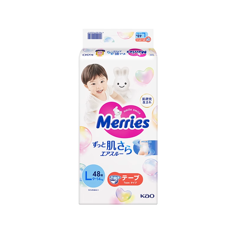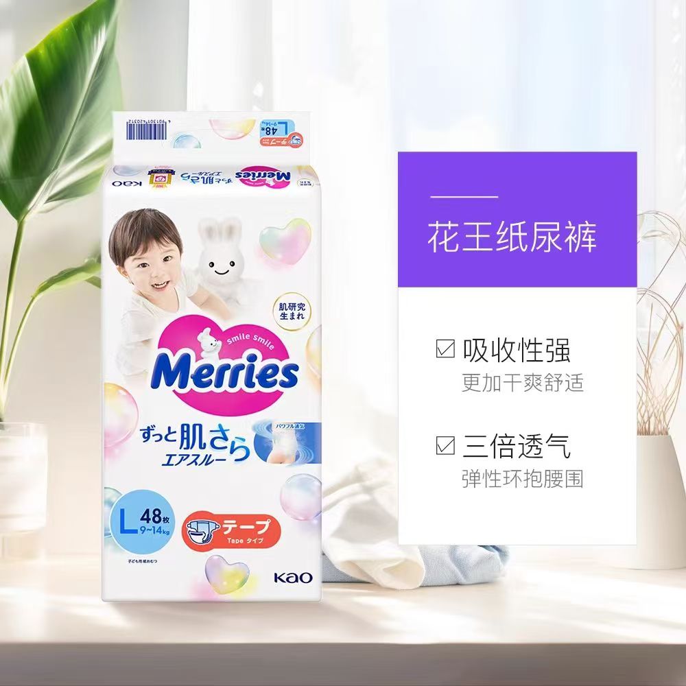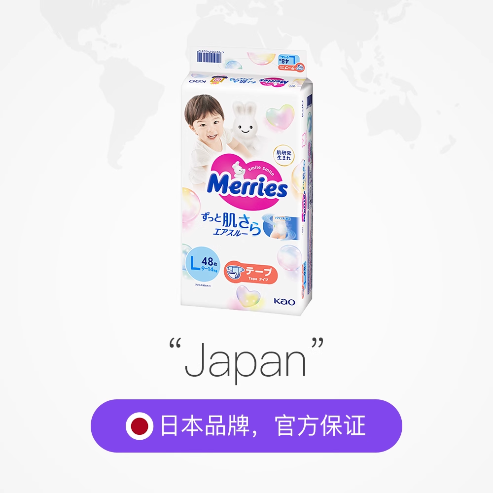 天猫【自营】日本花王妙而舒Merries超薄透气婴儿纸尿裤尿不湿L48*6