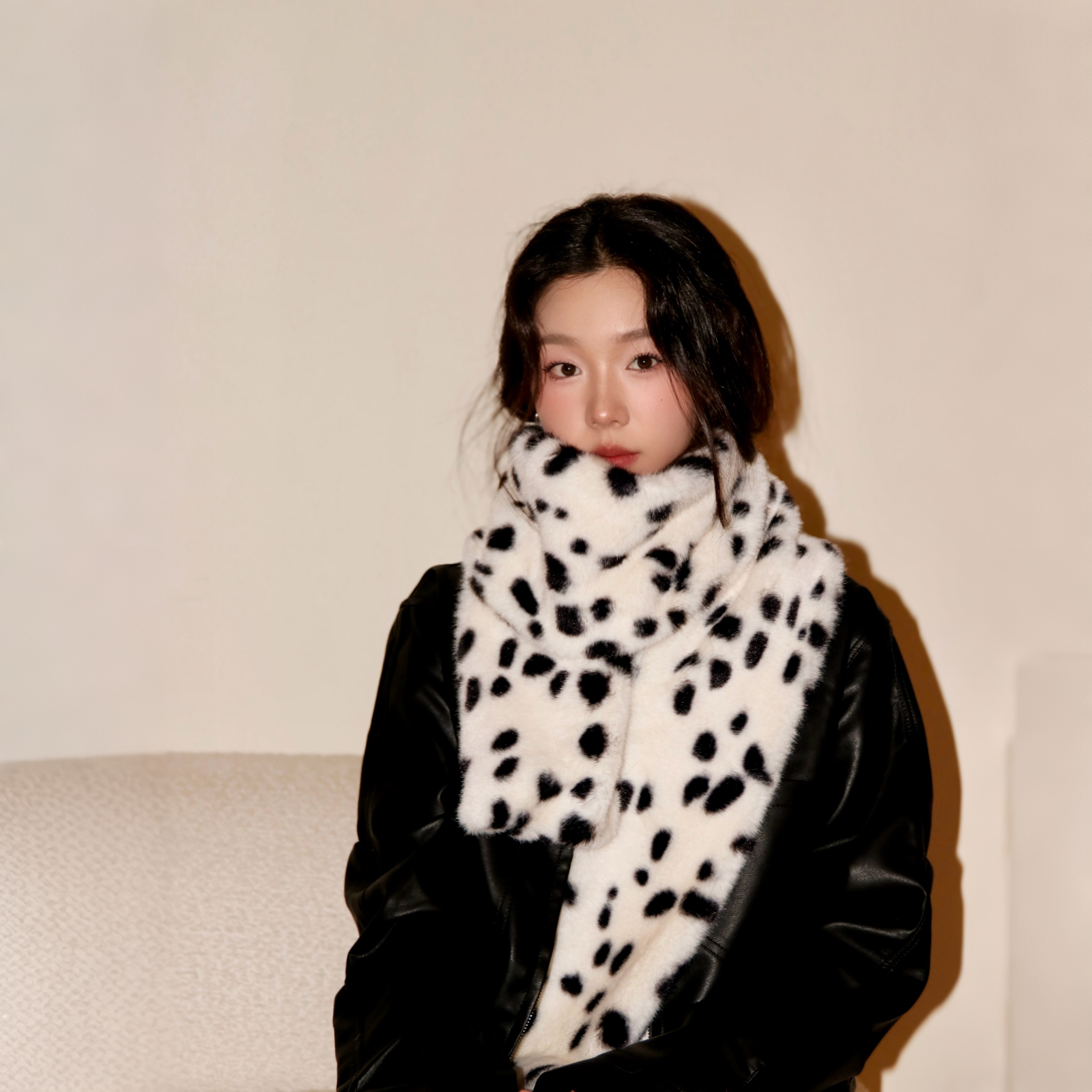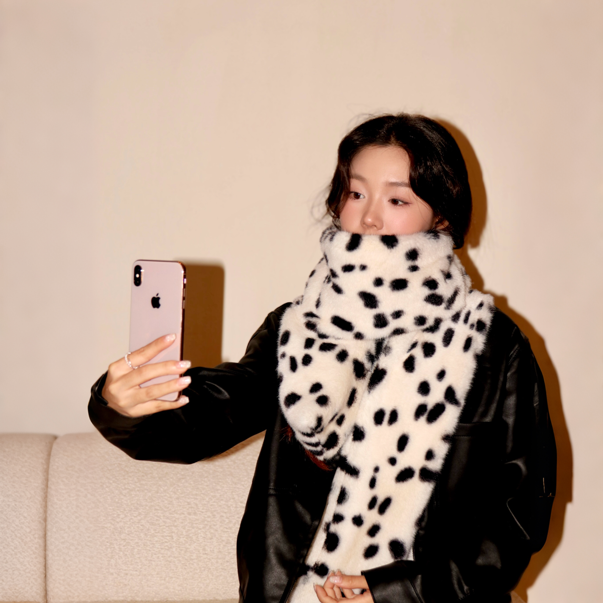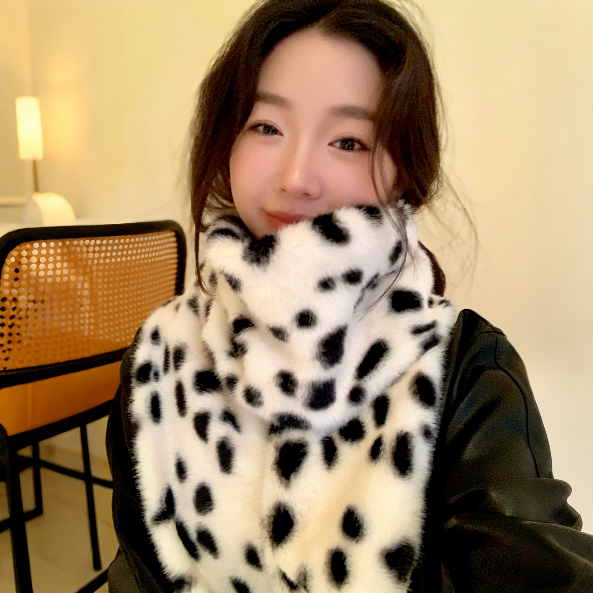 淘宝周给给围巾女2025秋冬新款百搭加绒加长加厚仿兔毛保暖豹点围脖