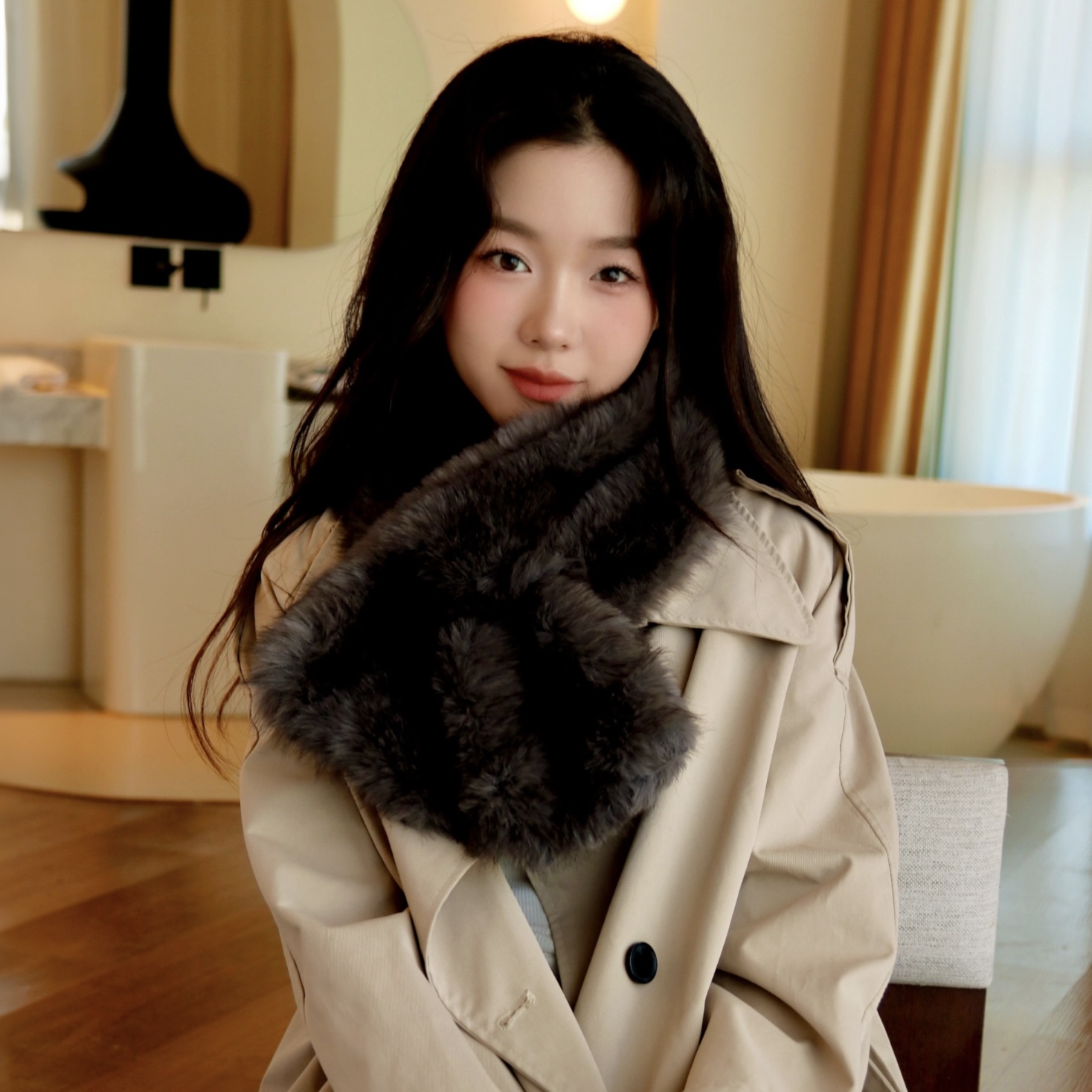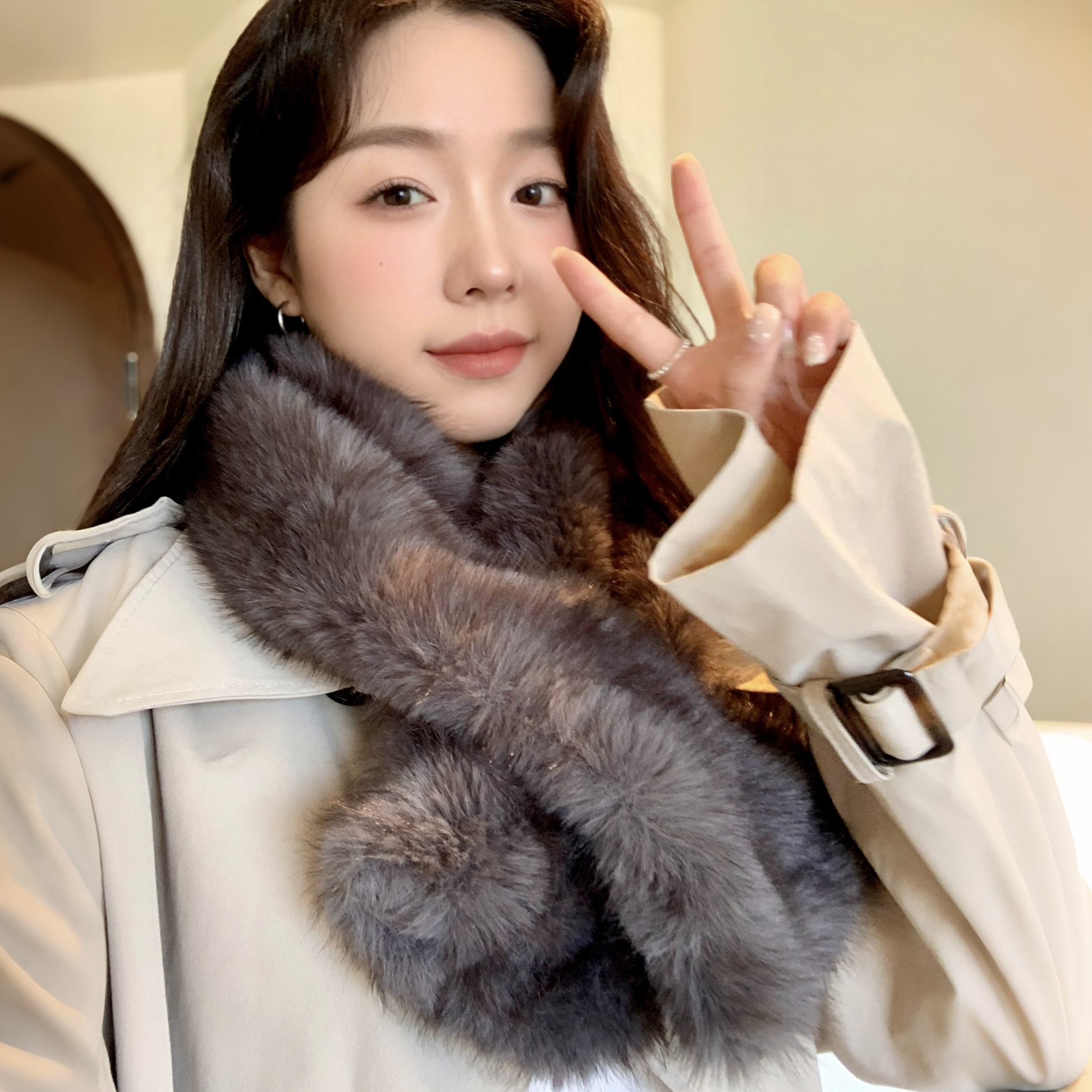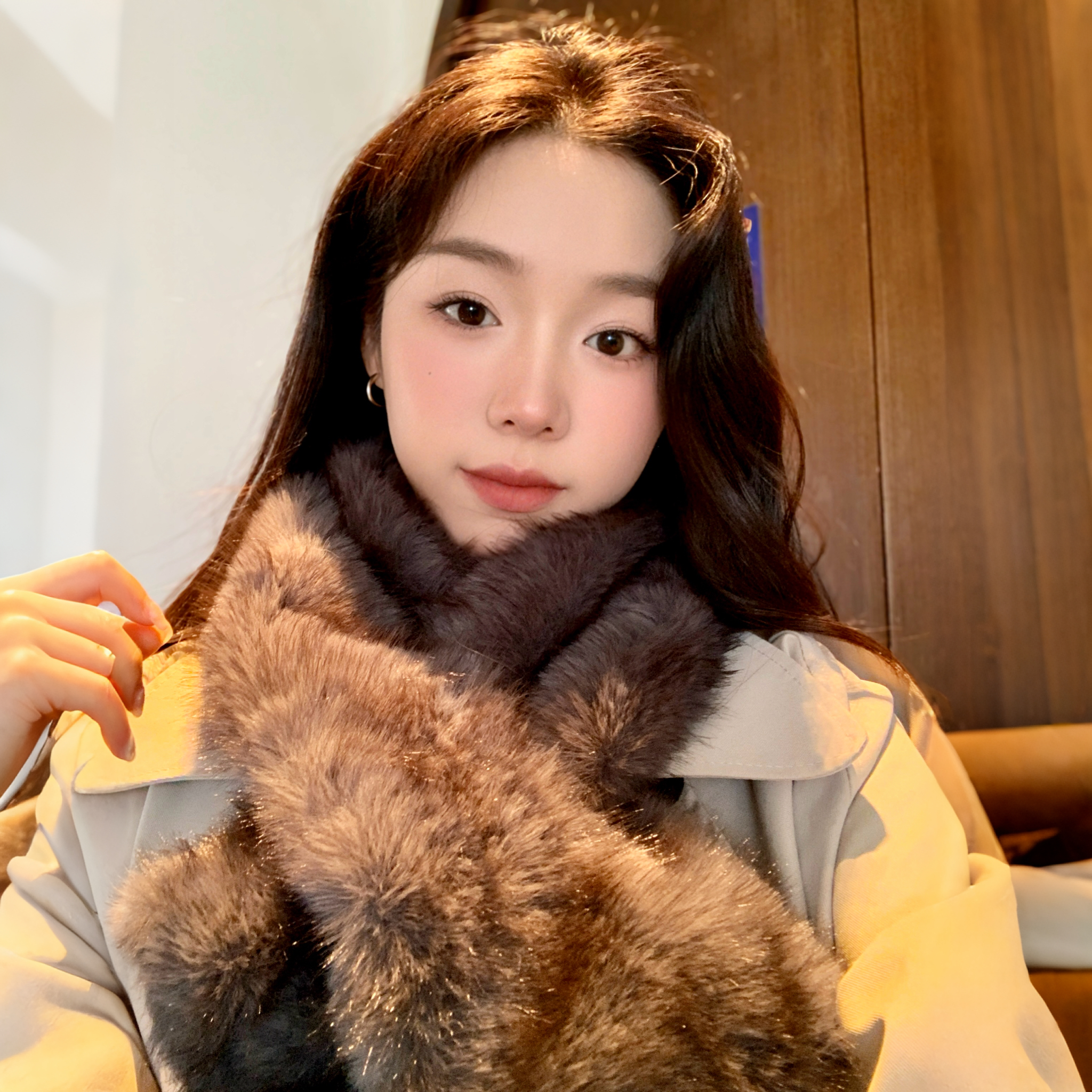 淘宝2025周给给高级灰仿皮草围巾秋冬轻奢保暖氛围感配饰女双面围巾