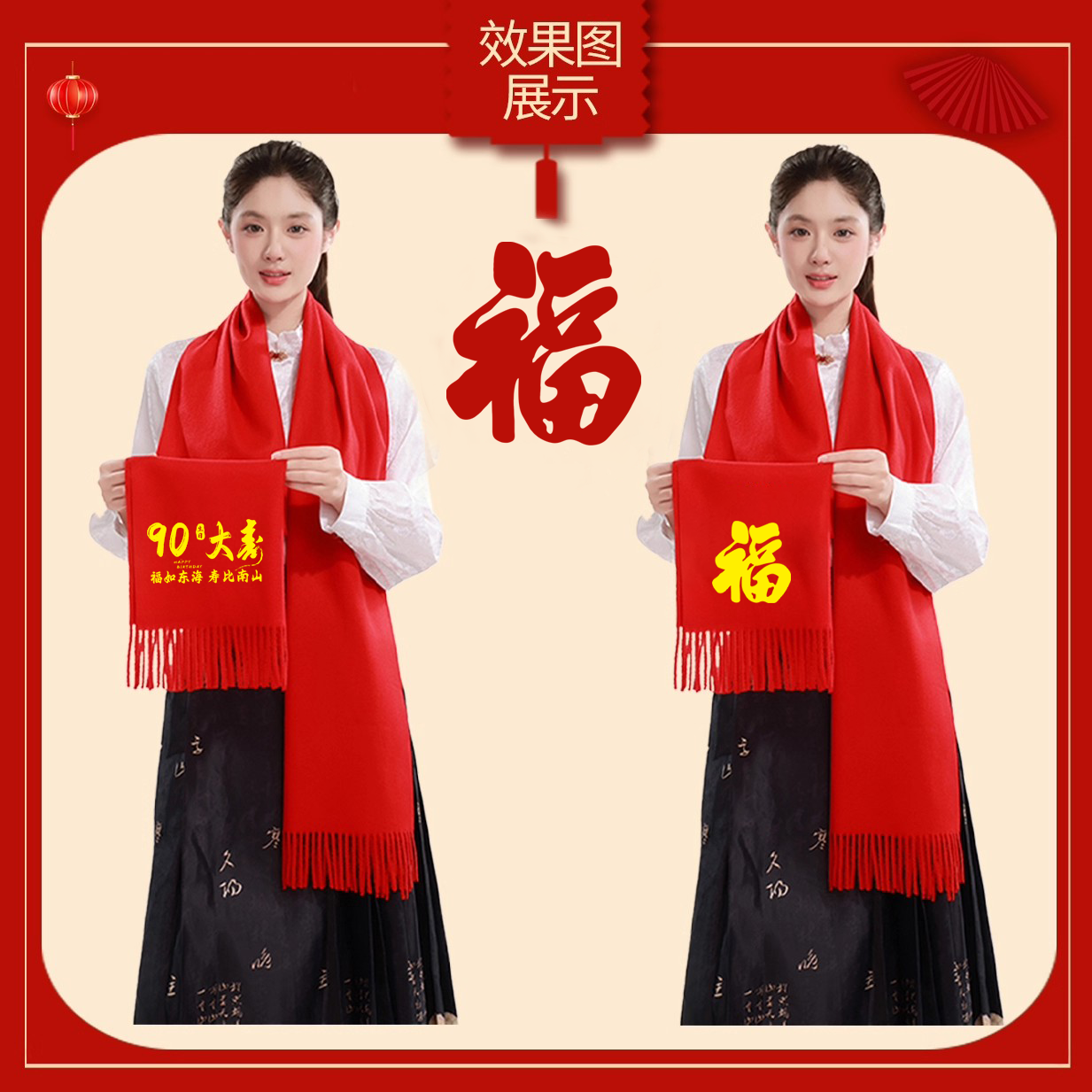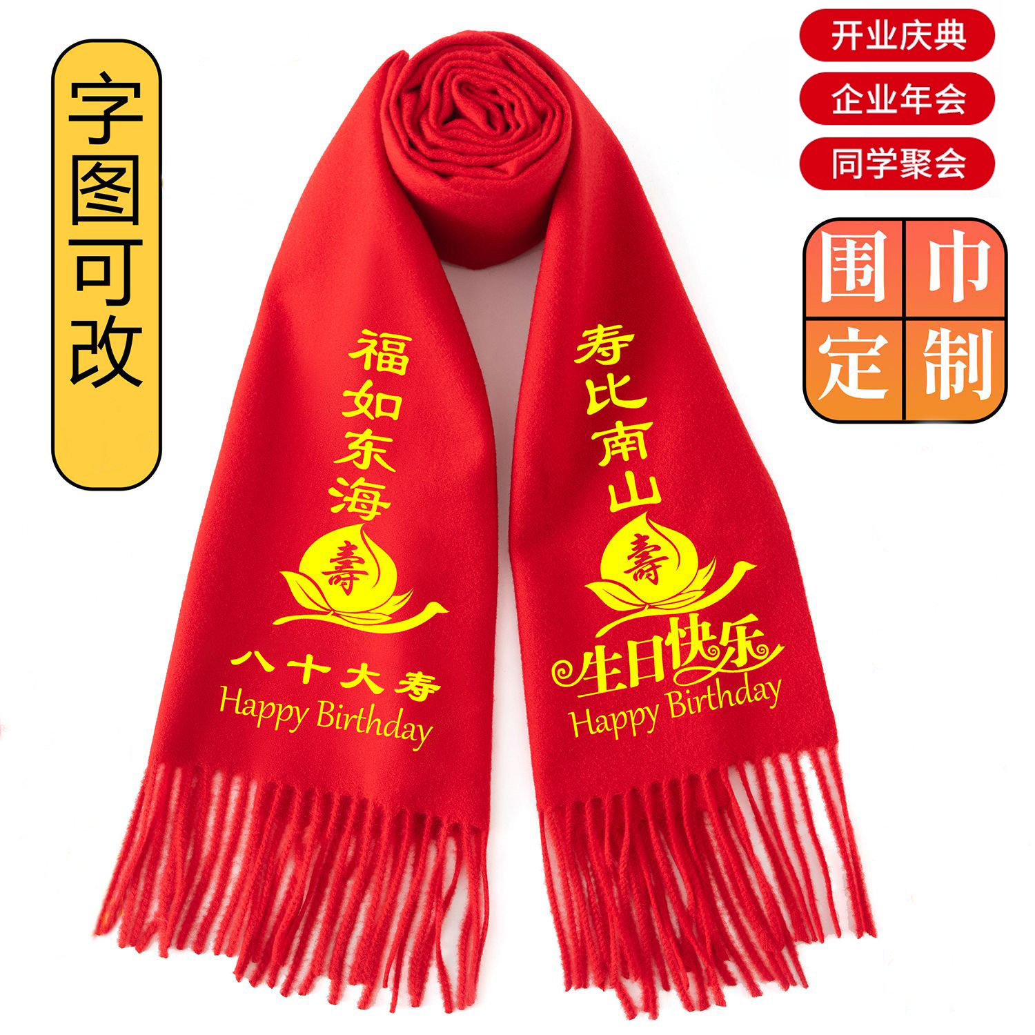 淘宝定制中国红围巾年会印字logo企业礼品生日寿宴祝寿70 80大寿90岁
