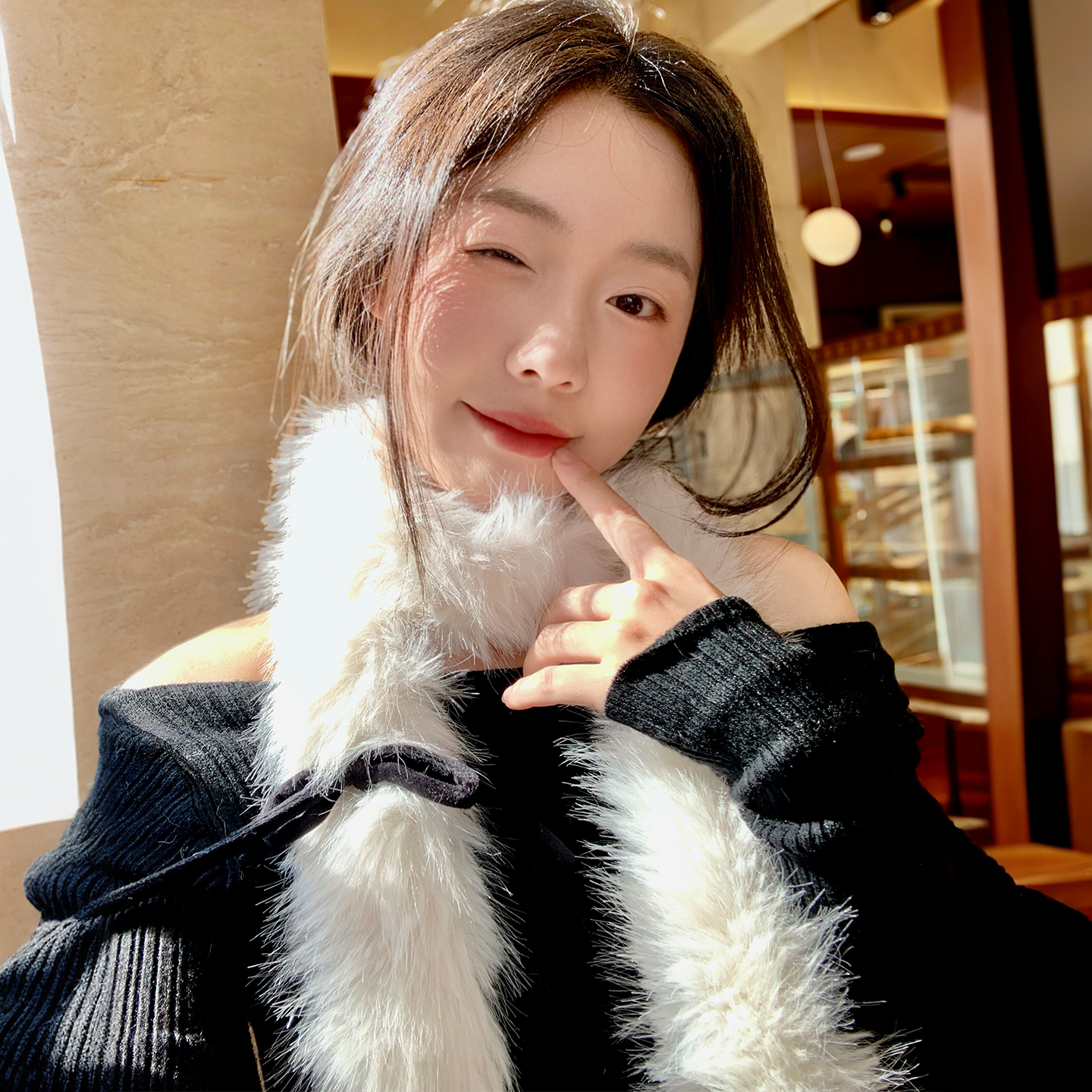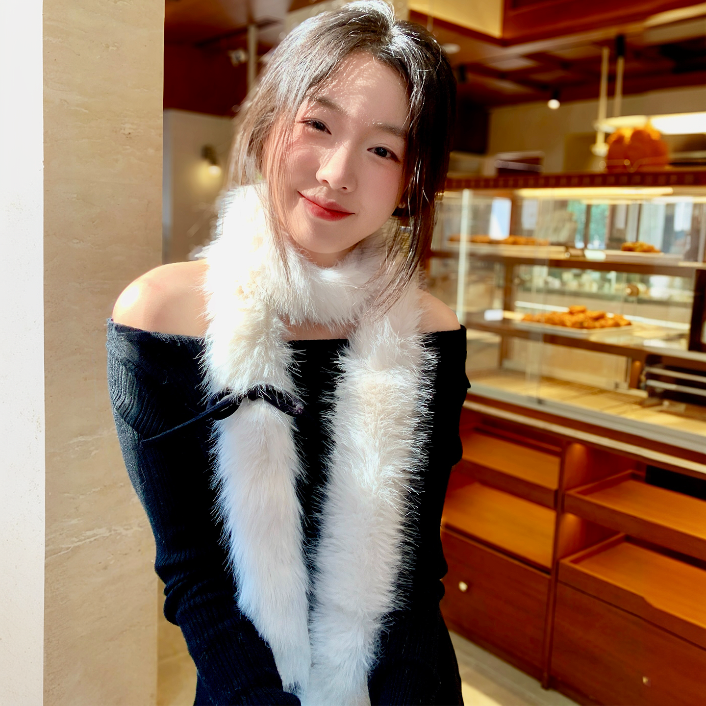 淘宝周给给蝴蝶结长条白色毛绒小围巾女冬季小巧细窄辣妹装饰细围脖