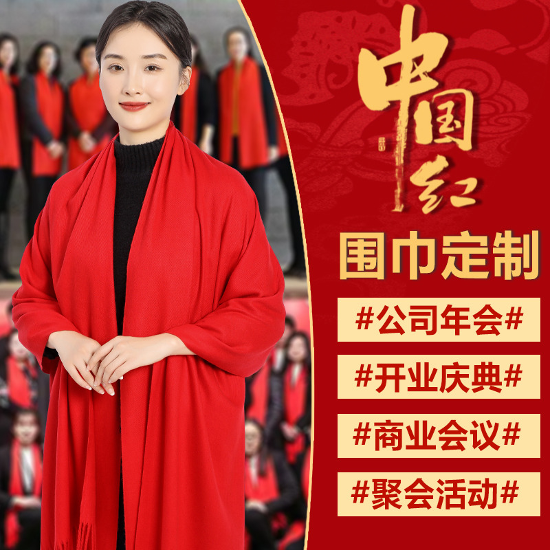 天猫中国红围巾定制刺绣logo公司会议年会活动同学聚会披肩大红色围脖