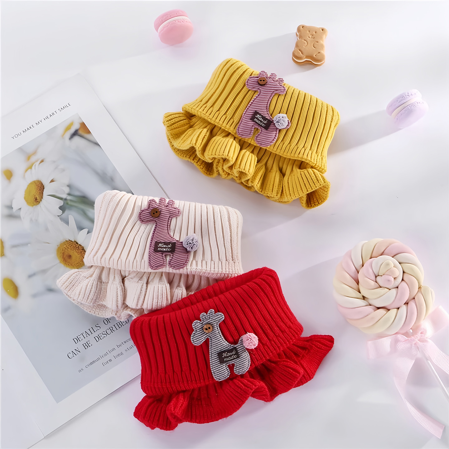 淘穿搭利器!秋冬高级感撞色可触屏手套氛围感针织细窄长条围巾围脖
