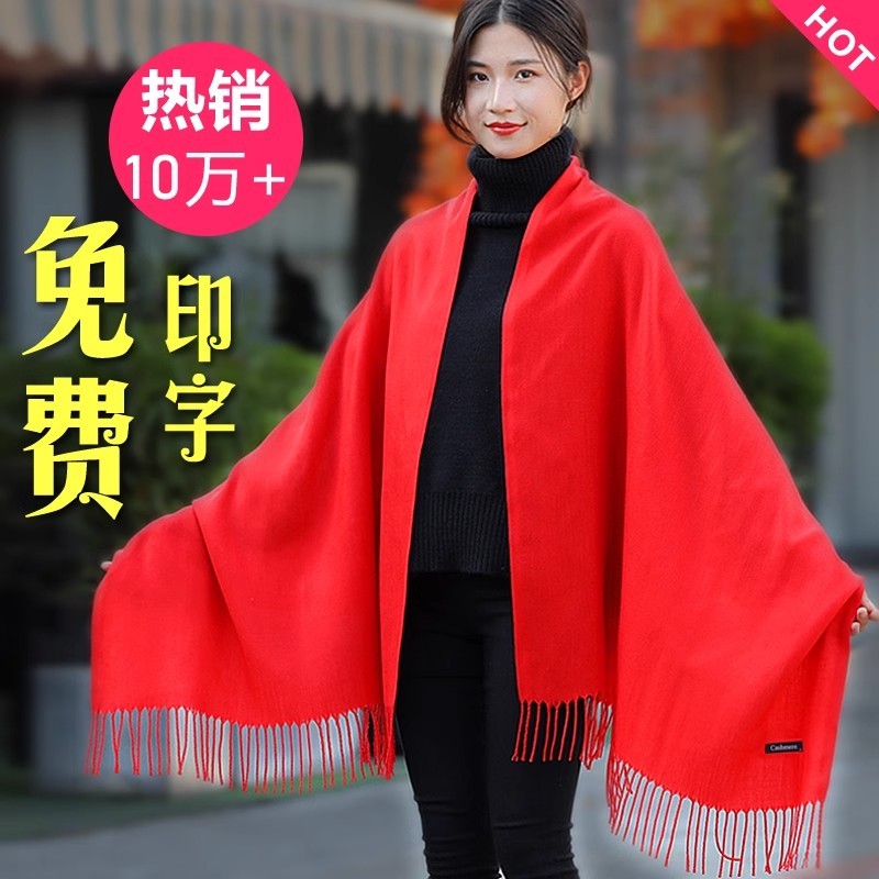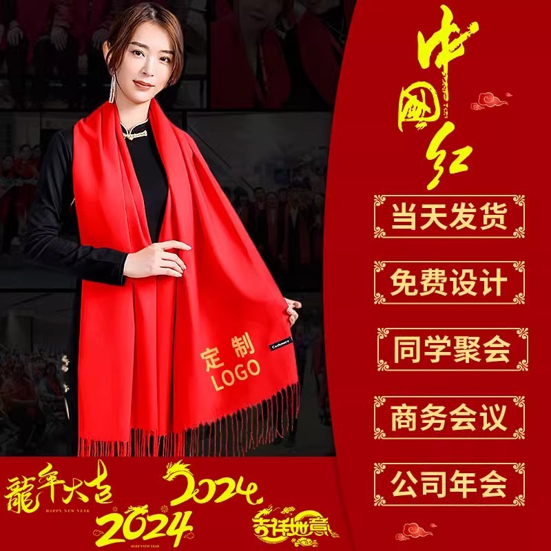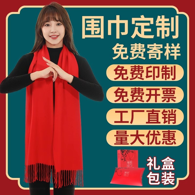 淘中国红围巾定制logo秋冬季企业年会活动庆典过年礼品红色围脖披肩