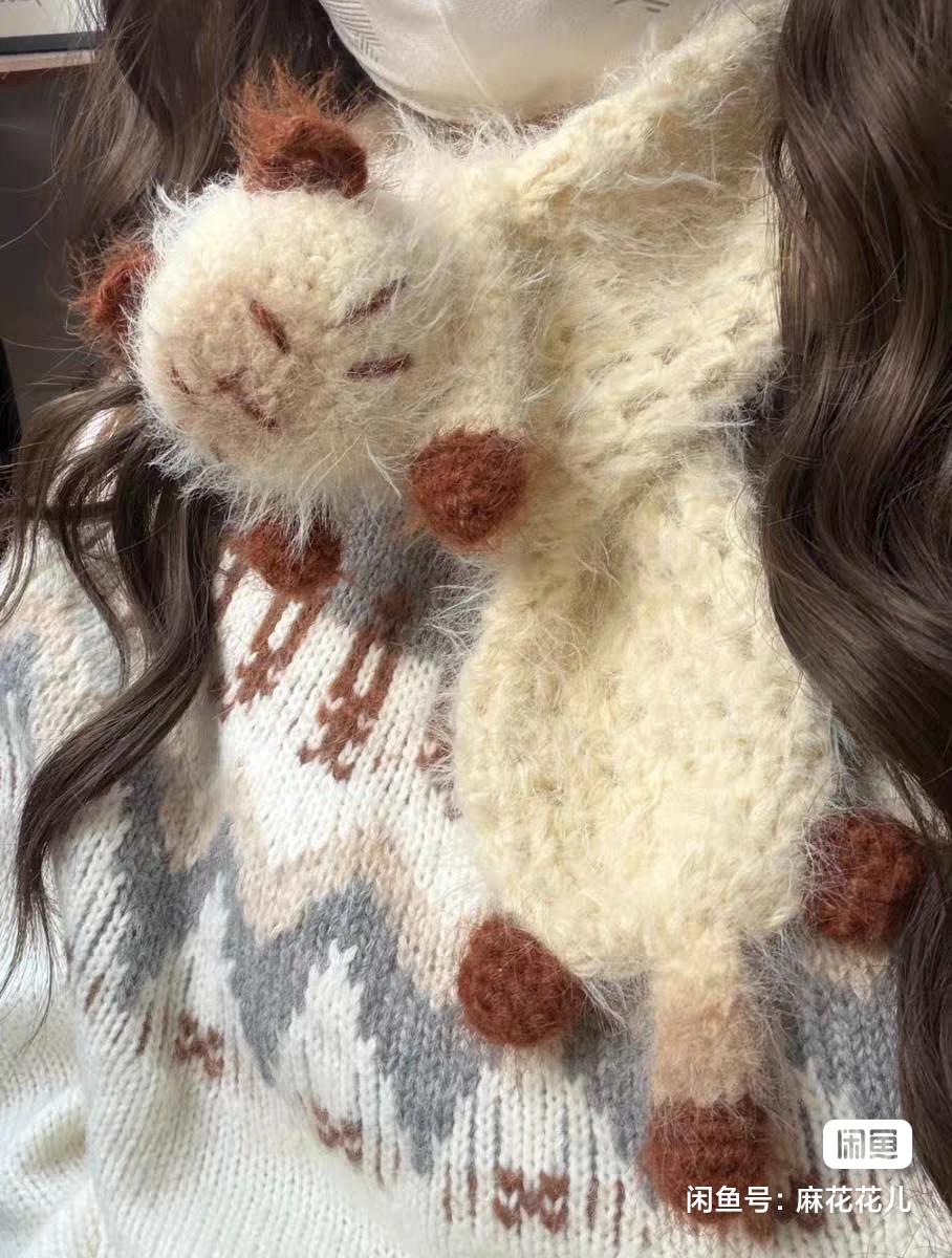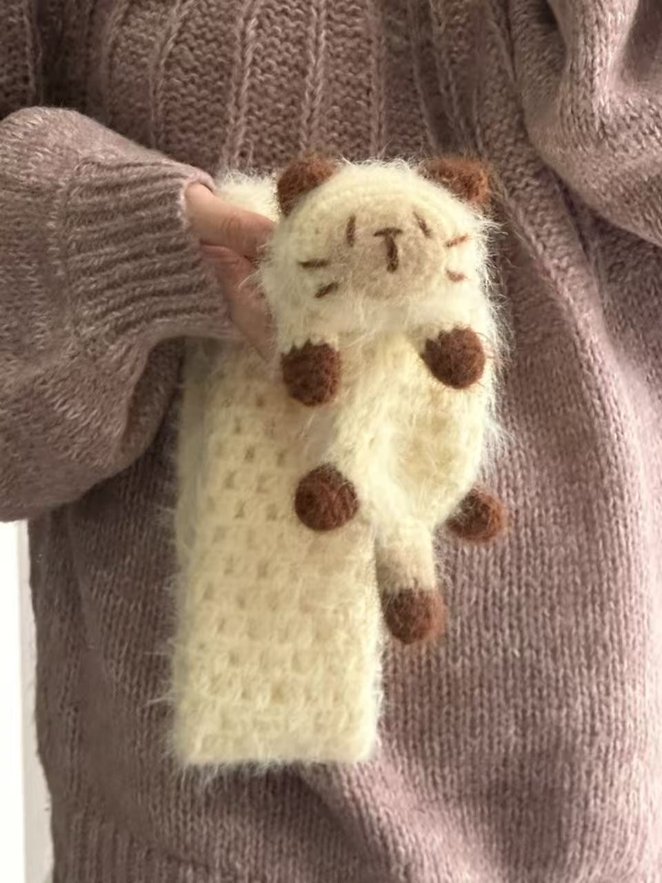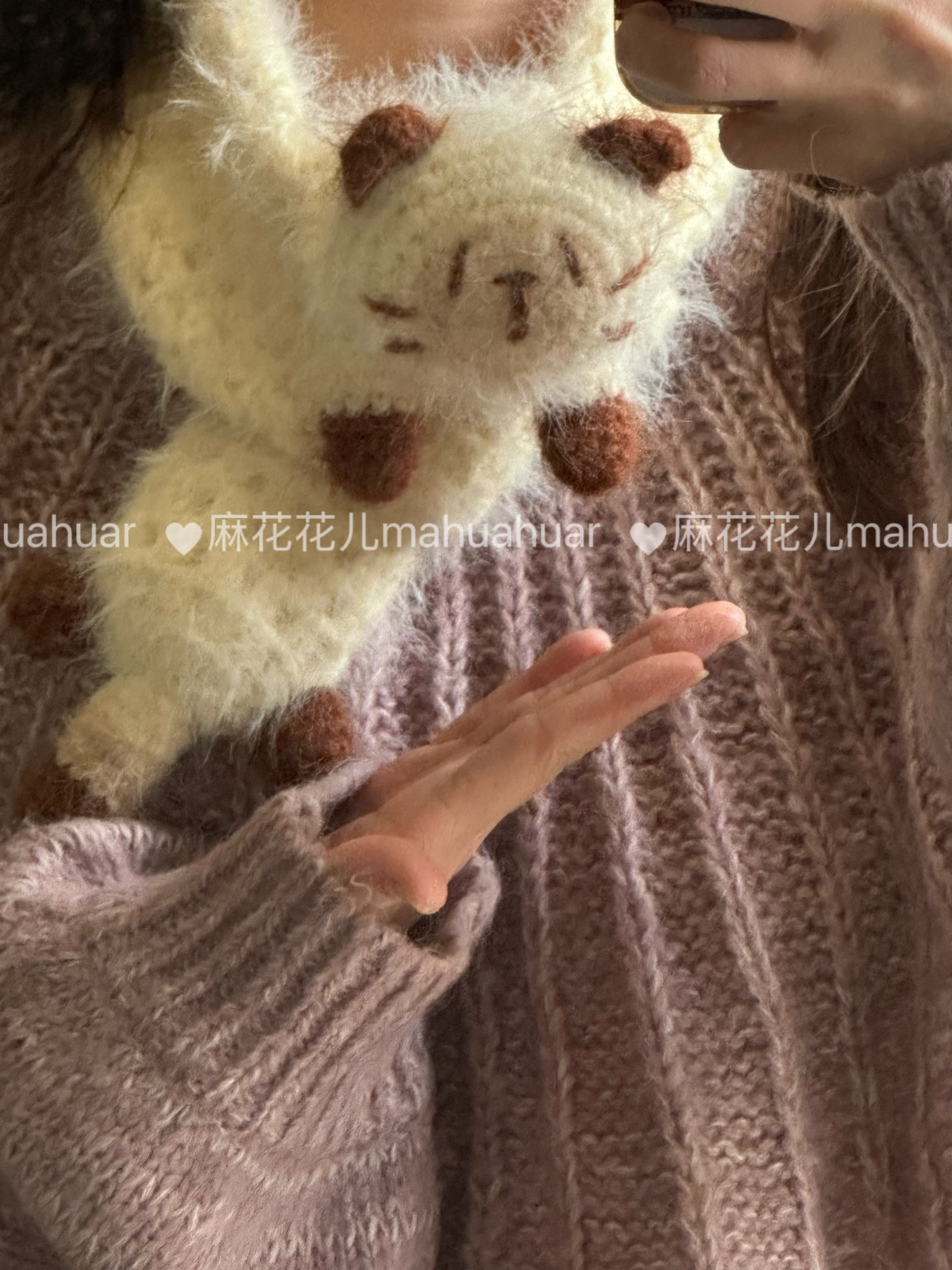 淘宝手工钩织雪花纱羊毛暹罗猫可爱猫咪成人儿童围巾毛线成品