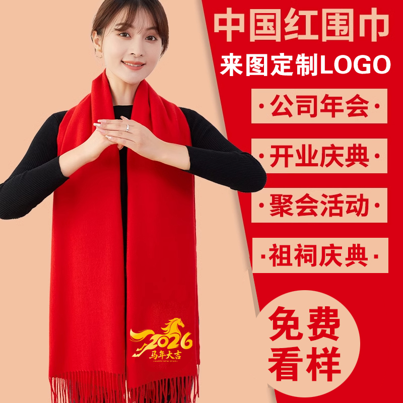 淘宝红围巾定制公司年会庆典开业活动同学聚会中国大红色围脖印字logo