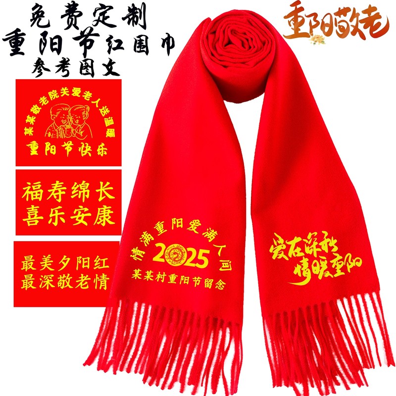 淘宝围巾定制logo刺绣中国红图案大红色大红同学聚会印红色年会红围巾