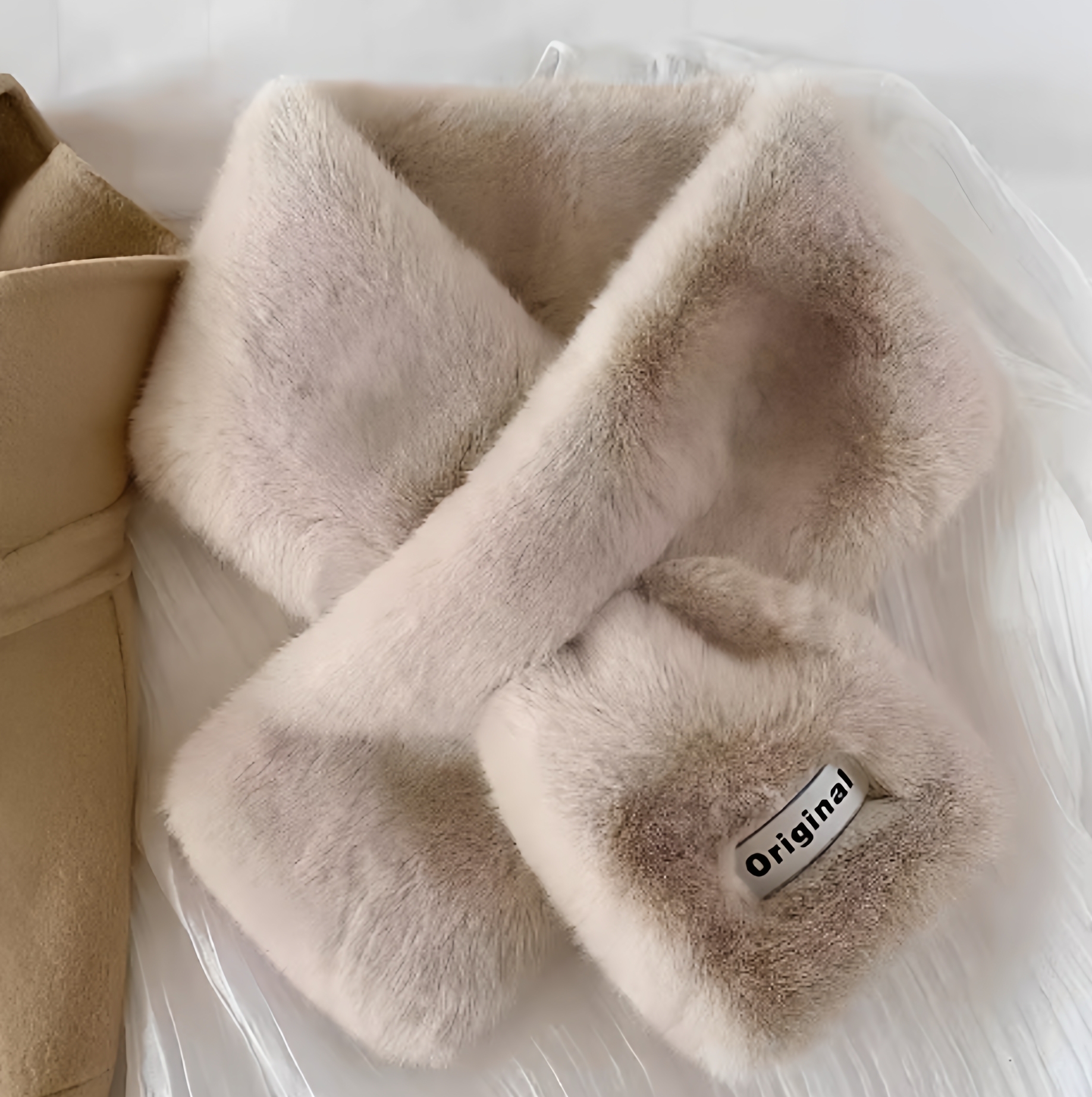 淘2025周给给复古渐变棕仿皮草围巾秋冬轻奢保暖氛围感配饰